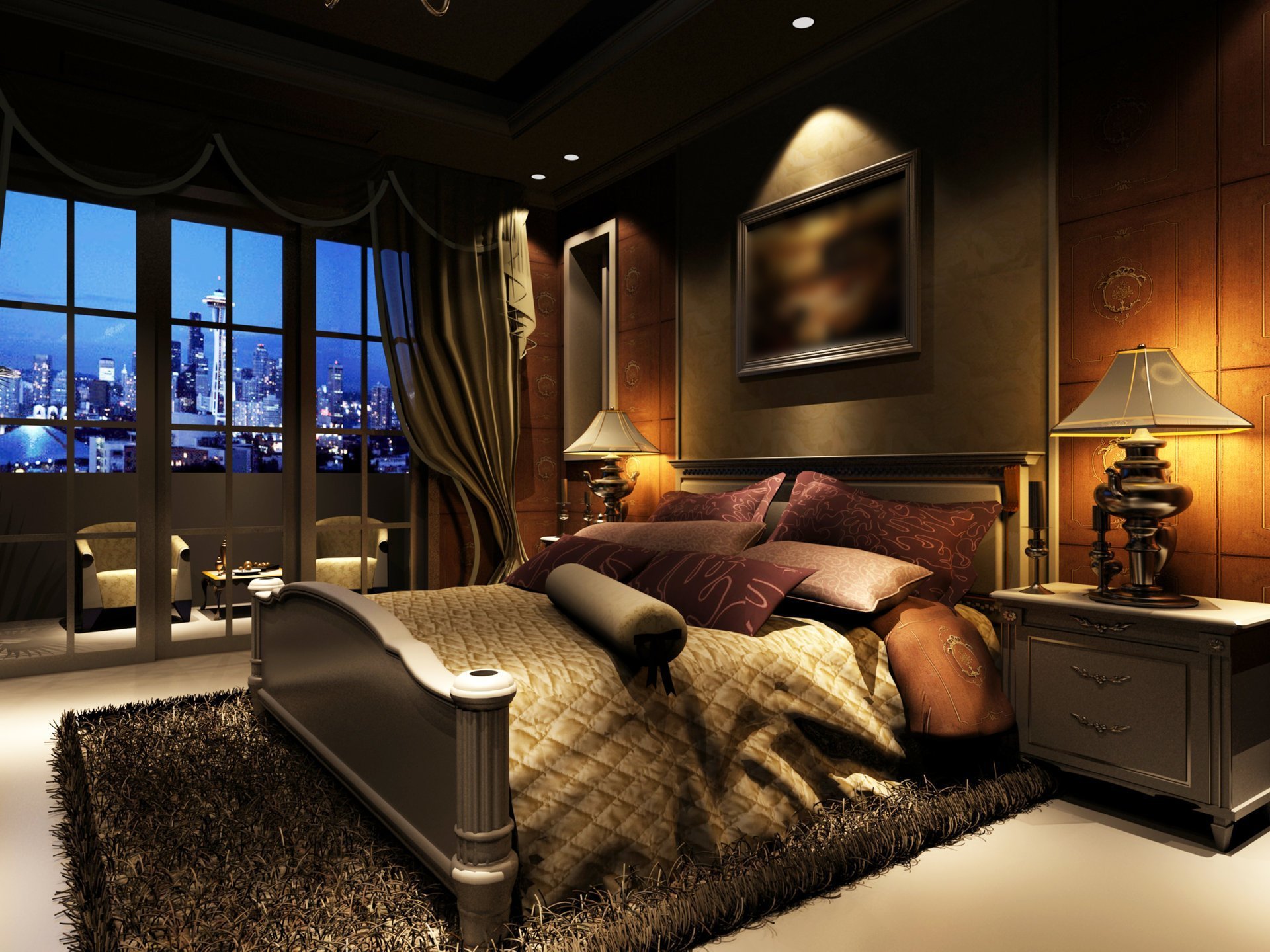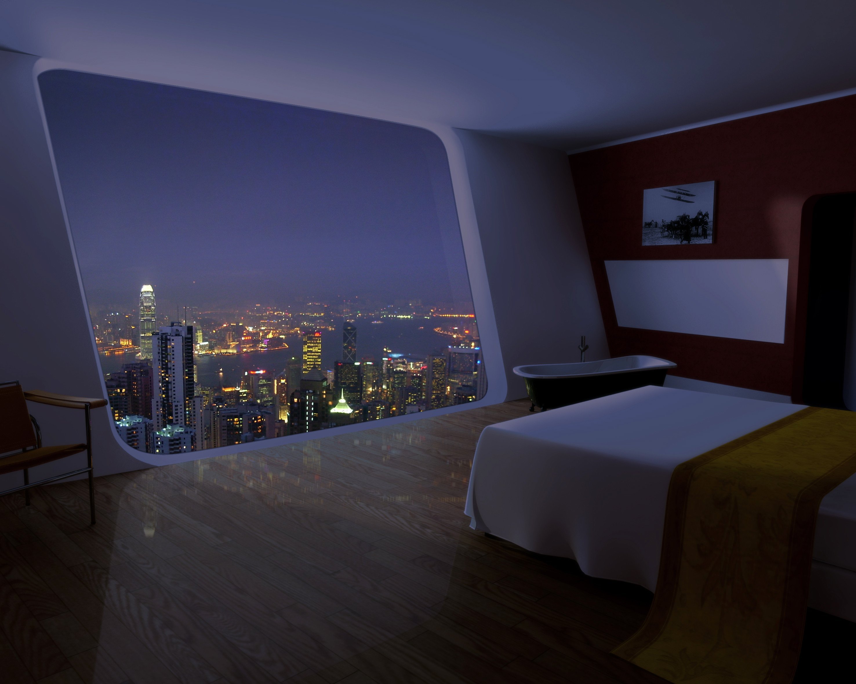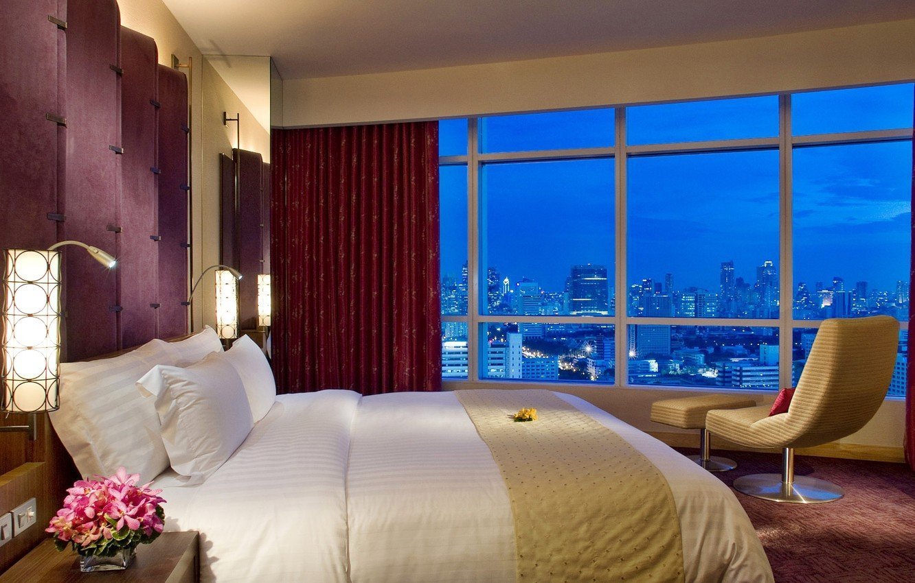 Комната с видом на город ночью
