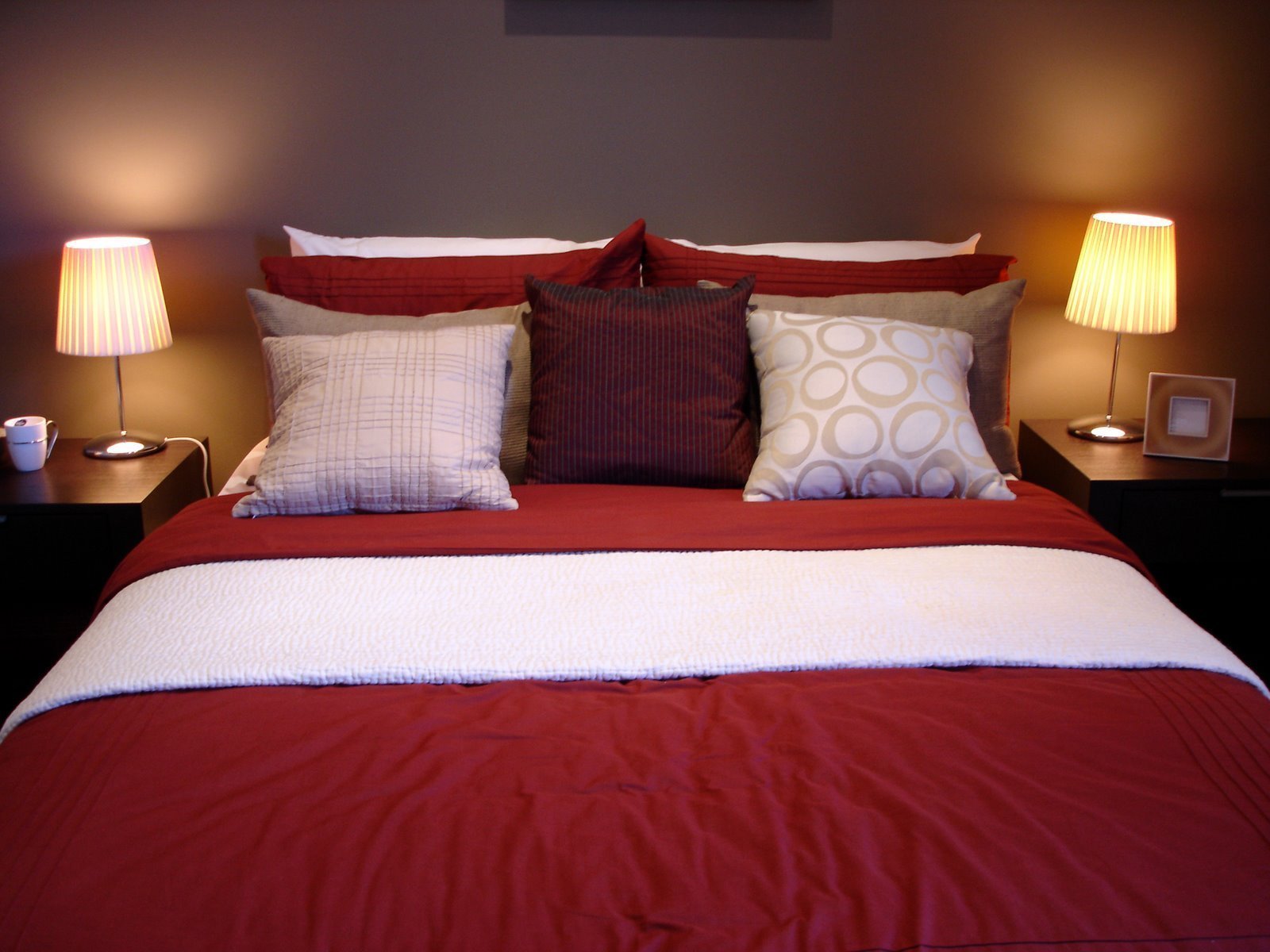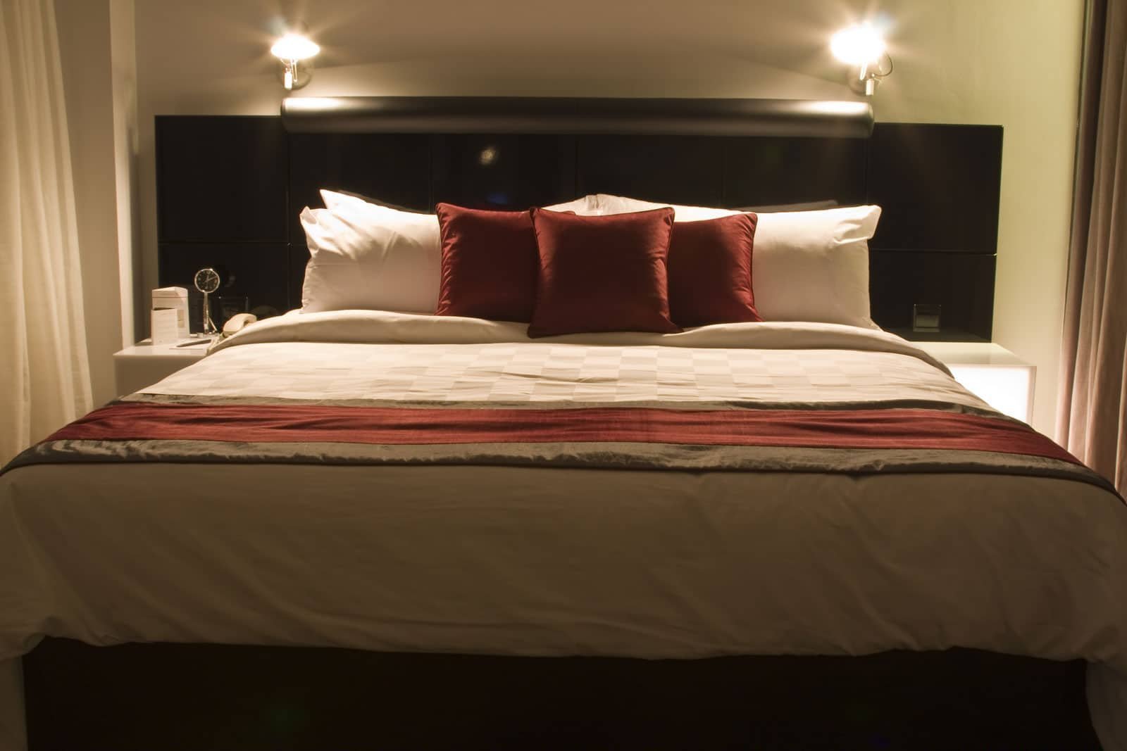 Красная кровать в интерьере спальни