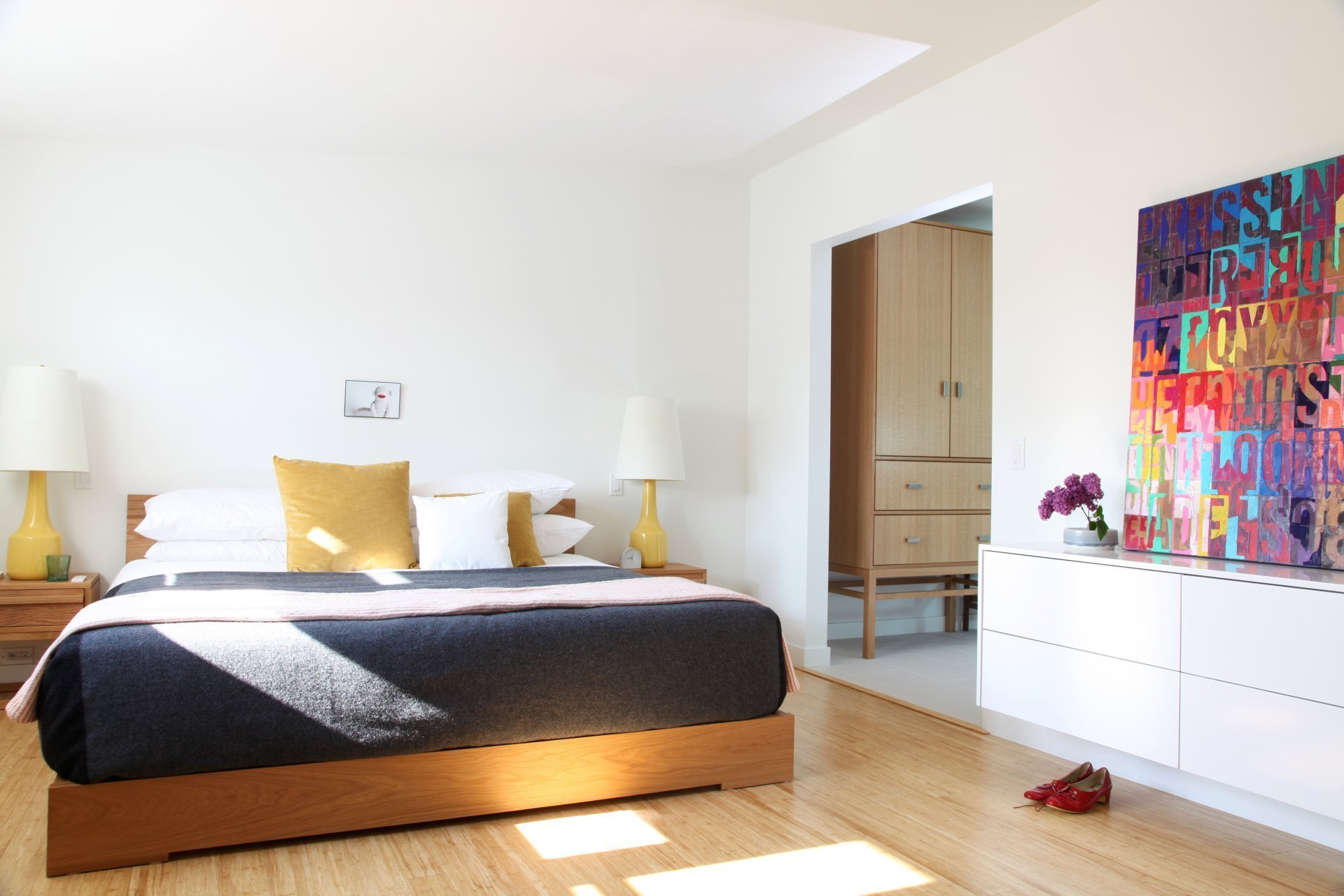 Спальня с белой кроватью