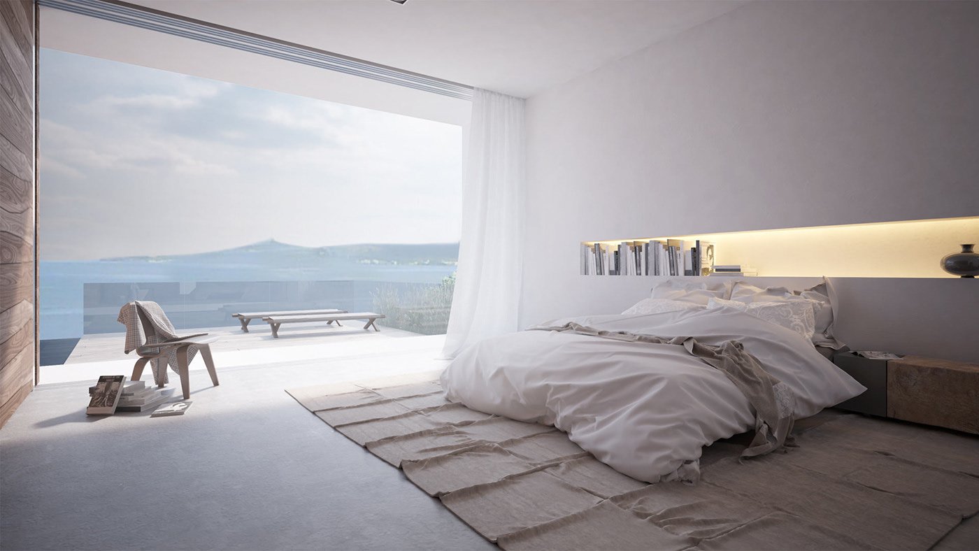 Спальня с панорамным окном Минимализм