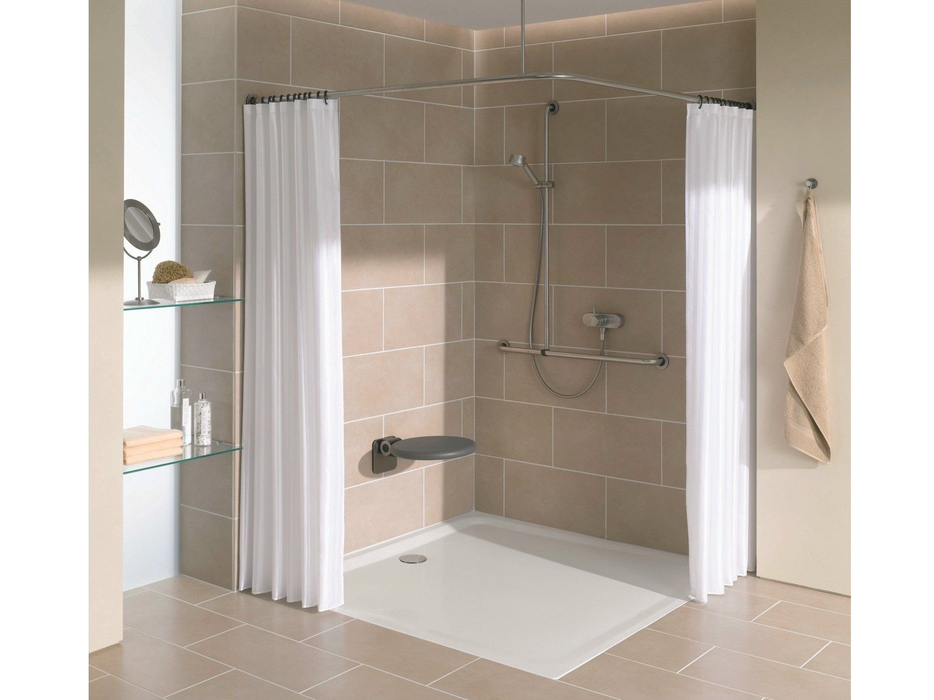 Душевые из плитки со шторкой