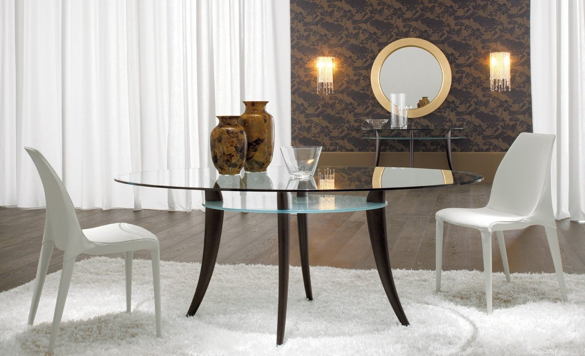 Круглый стеклянный стол в гостиную