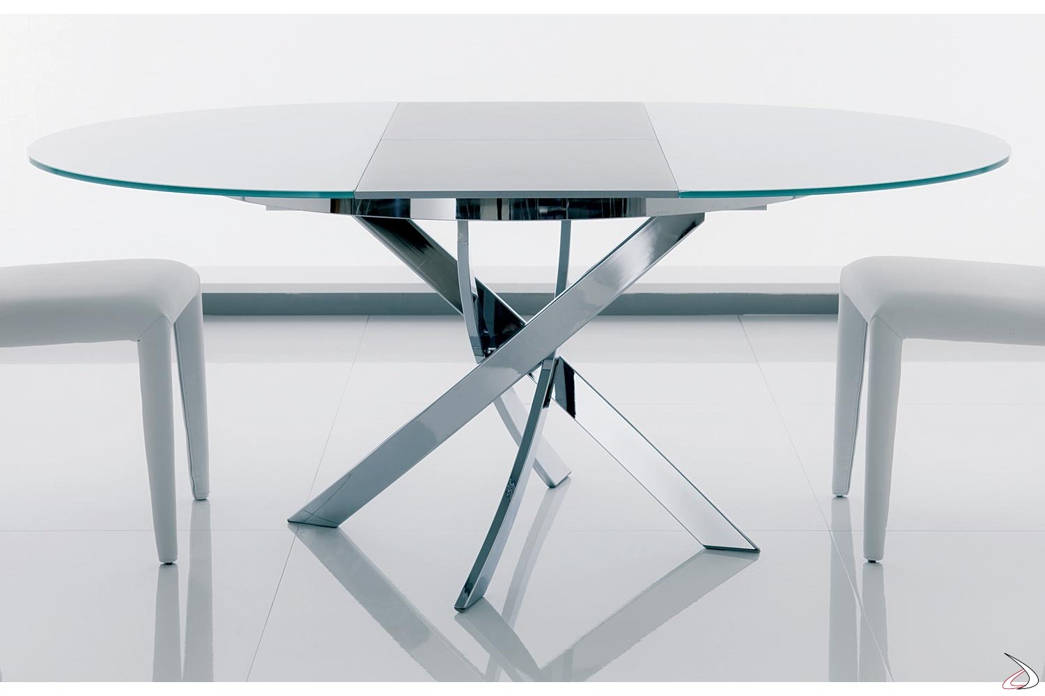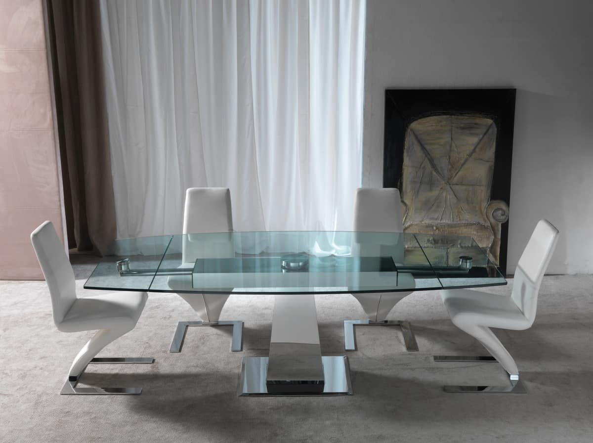 Обеденный стеклянный раскладной стол овальный