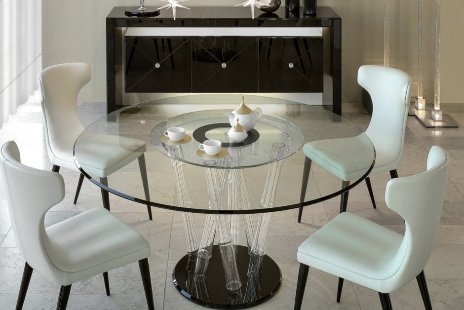 Круглый стеклянный стол на кухню