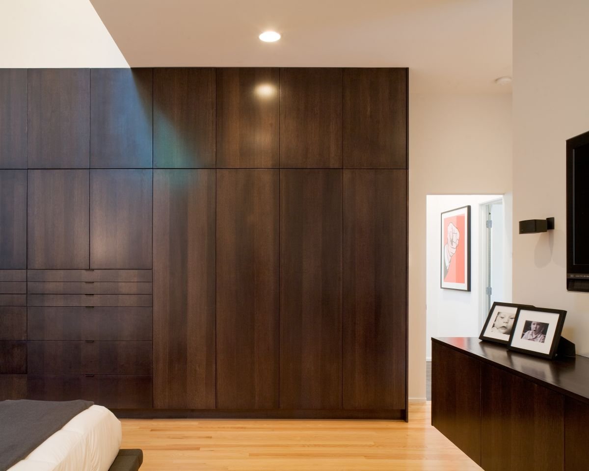 Встроенные шкафы в спальню под дерево