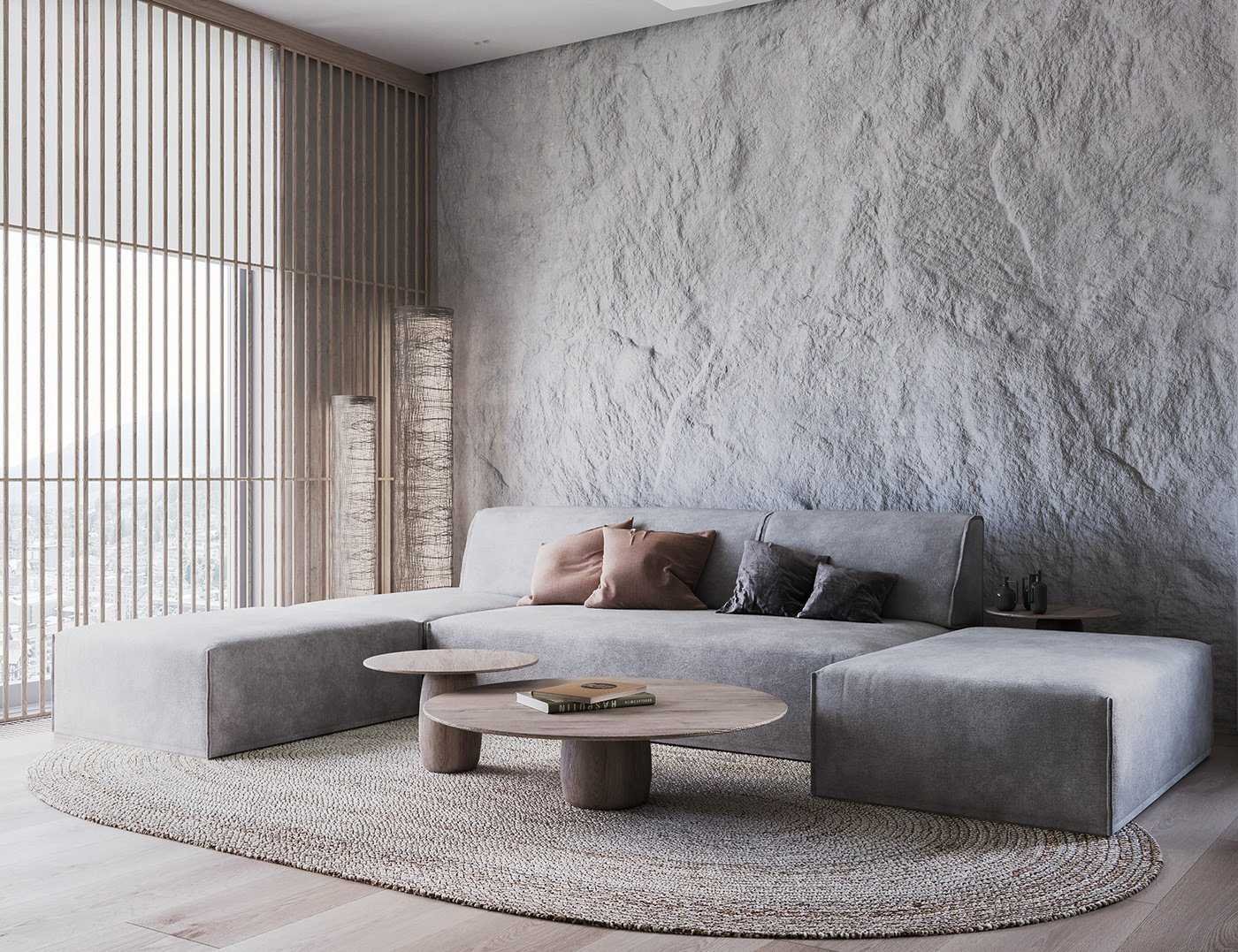 Серый камень в интерьере