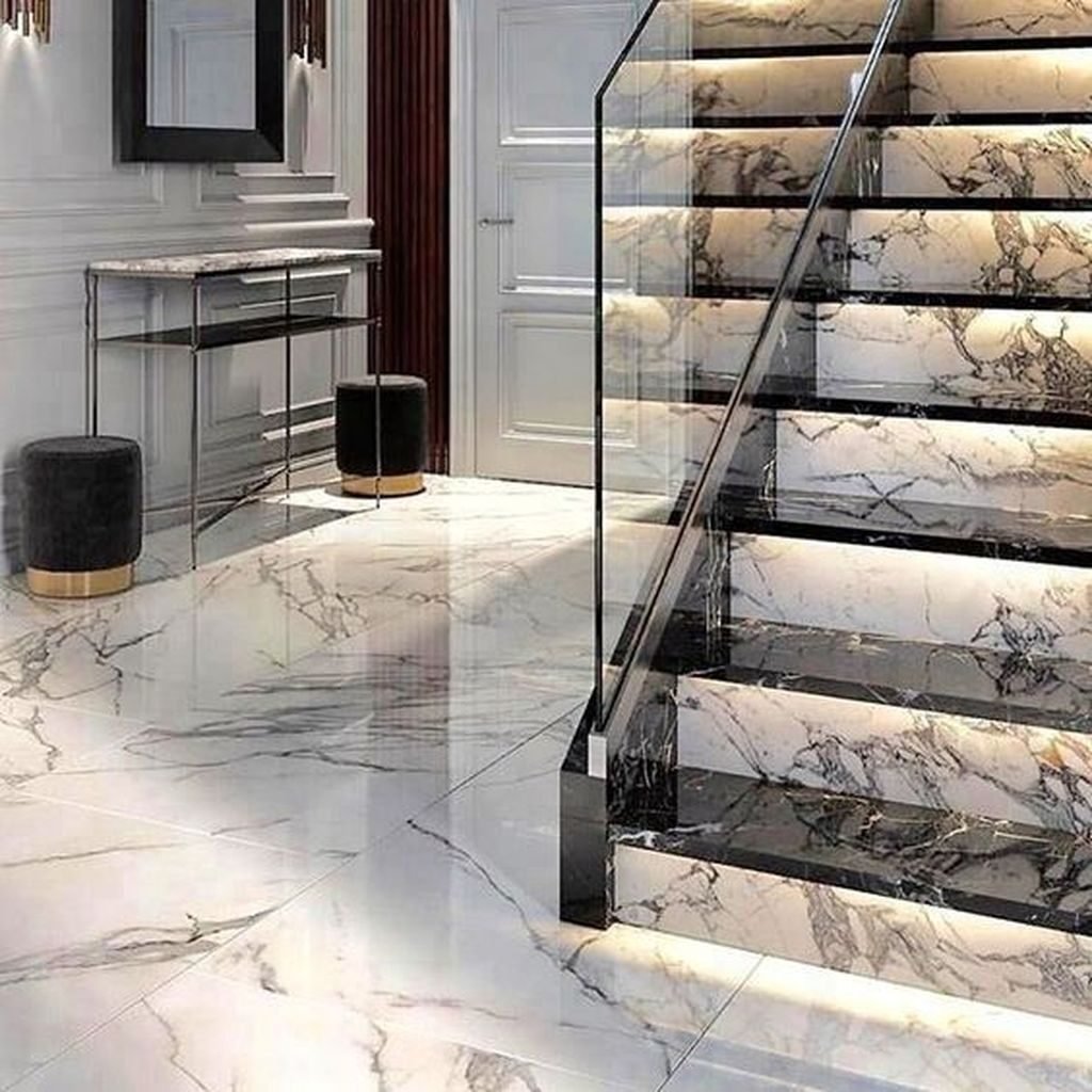 Лестница из керамогранита под мрамор