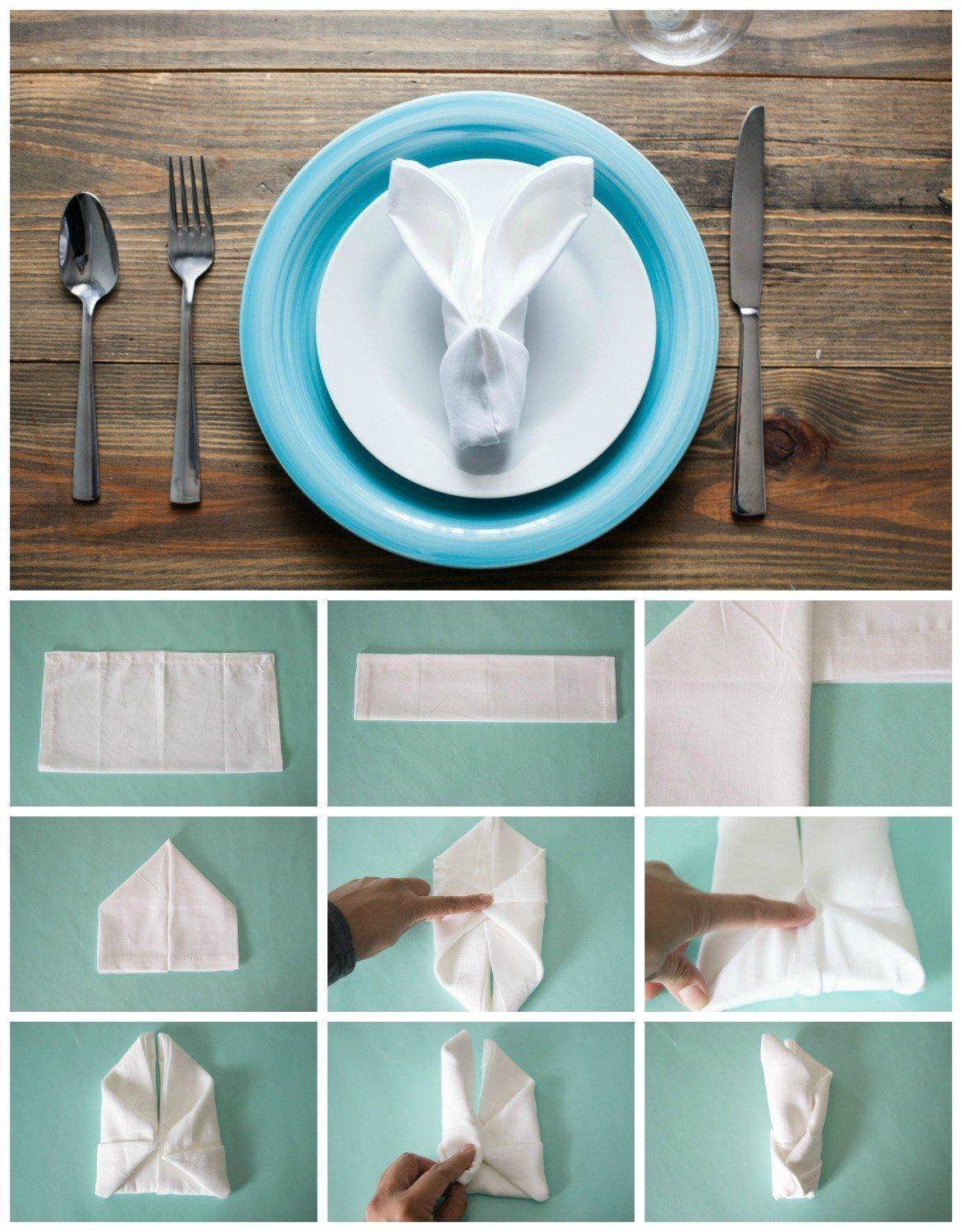 Салфетки сложенные зайчиком