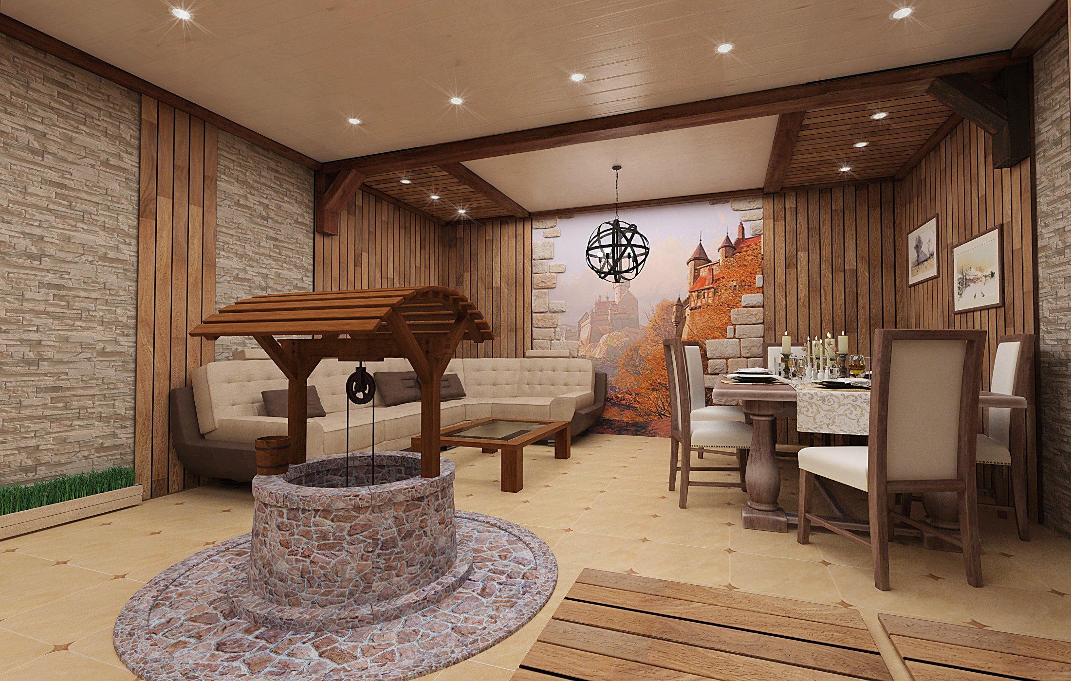 Интерьер комнаты отдыха в бане 2*2