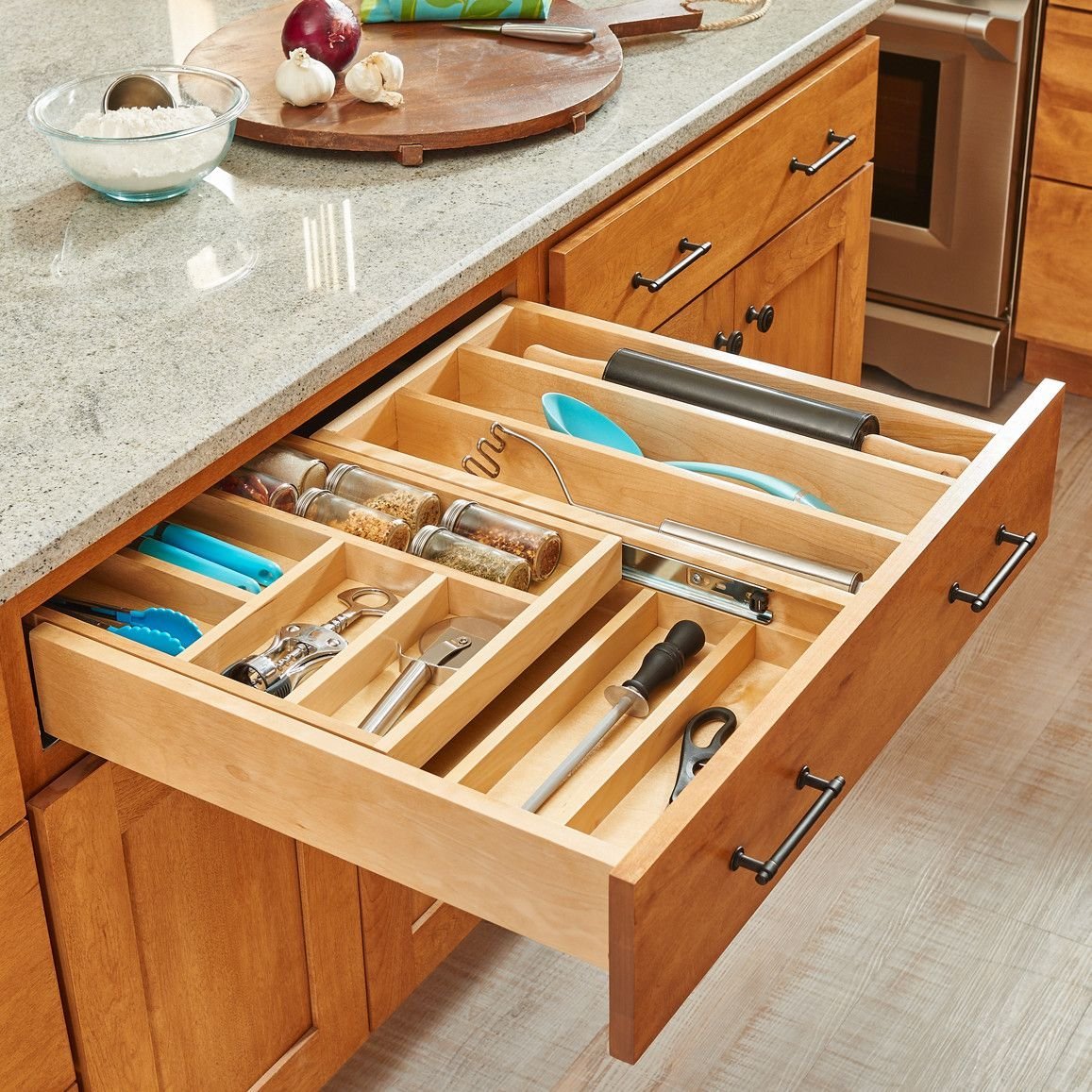 Разделители в ящики для хранения на кухне
