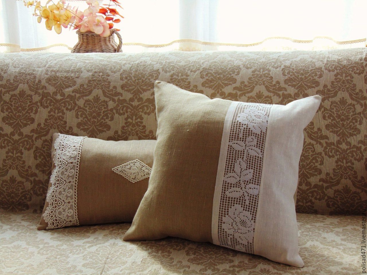 Диванная подушка с кружевом