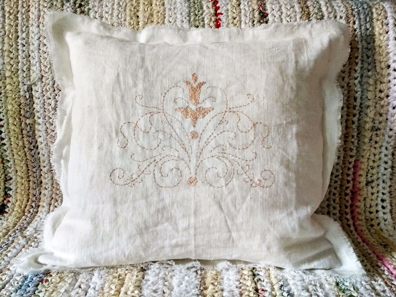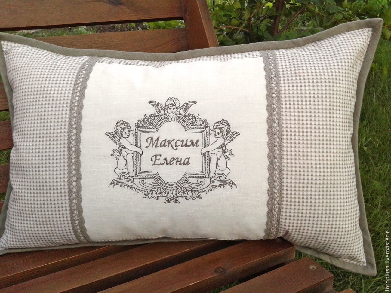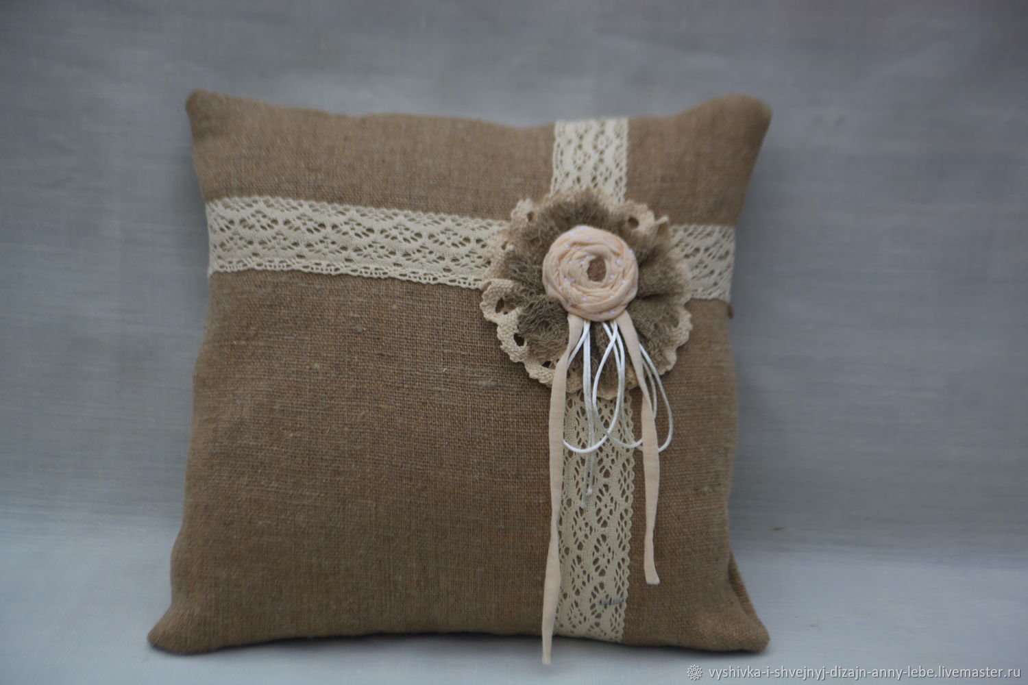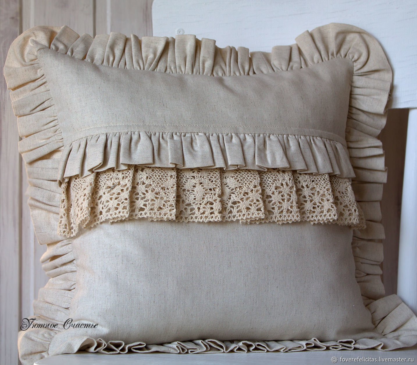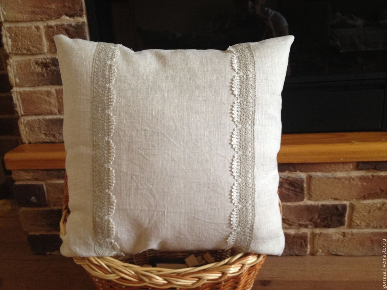 Льняная подушка с кружевом