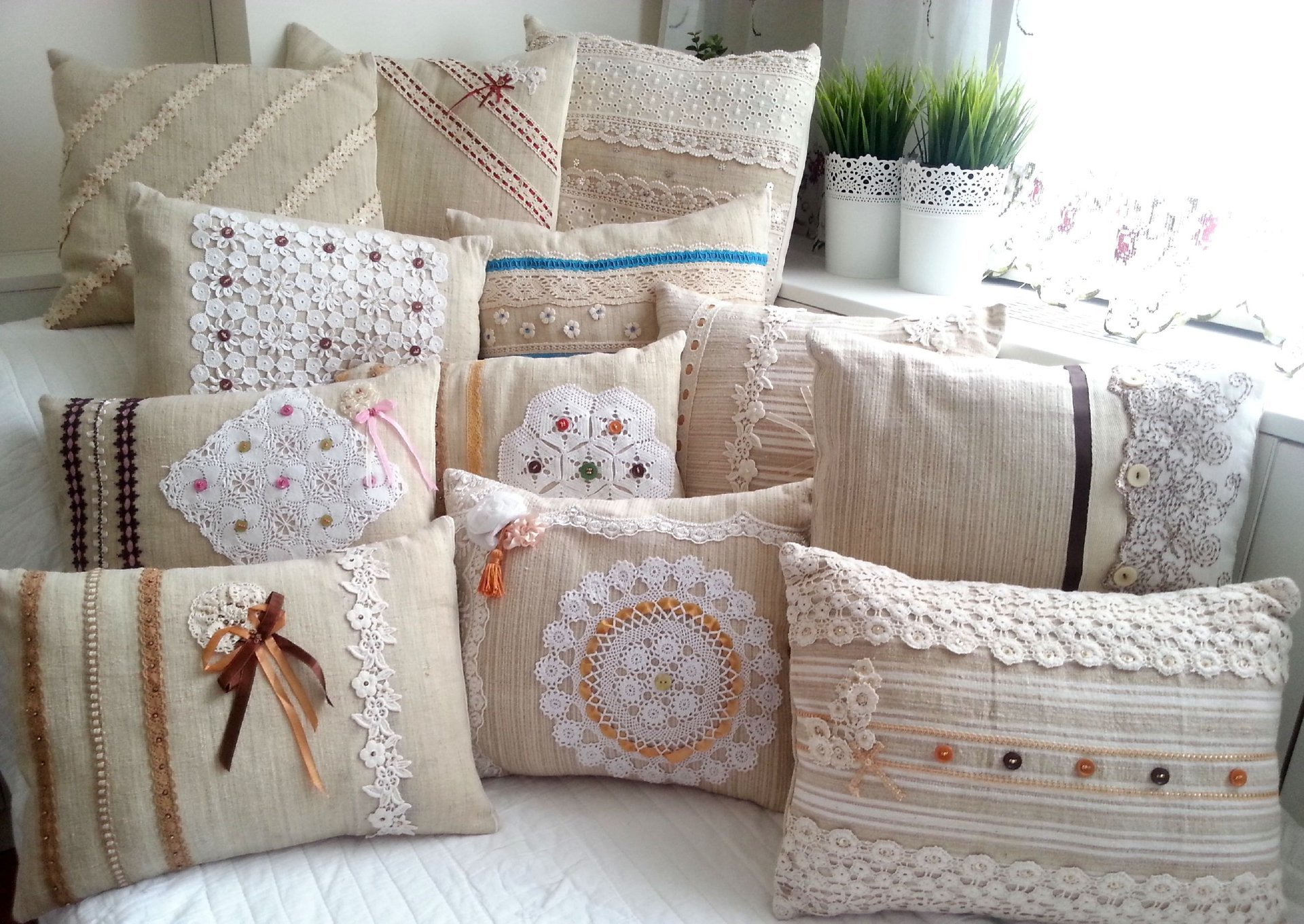 Декоративные подушки с кружевами