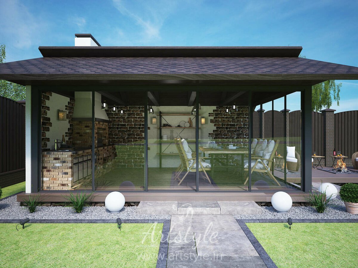 Современная беседка с барбекю