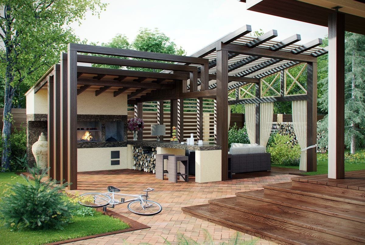 Беседка пергола патио мангальная