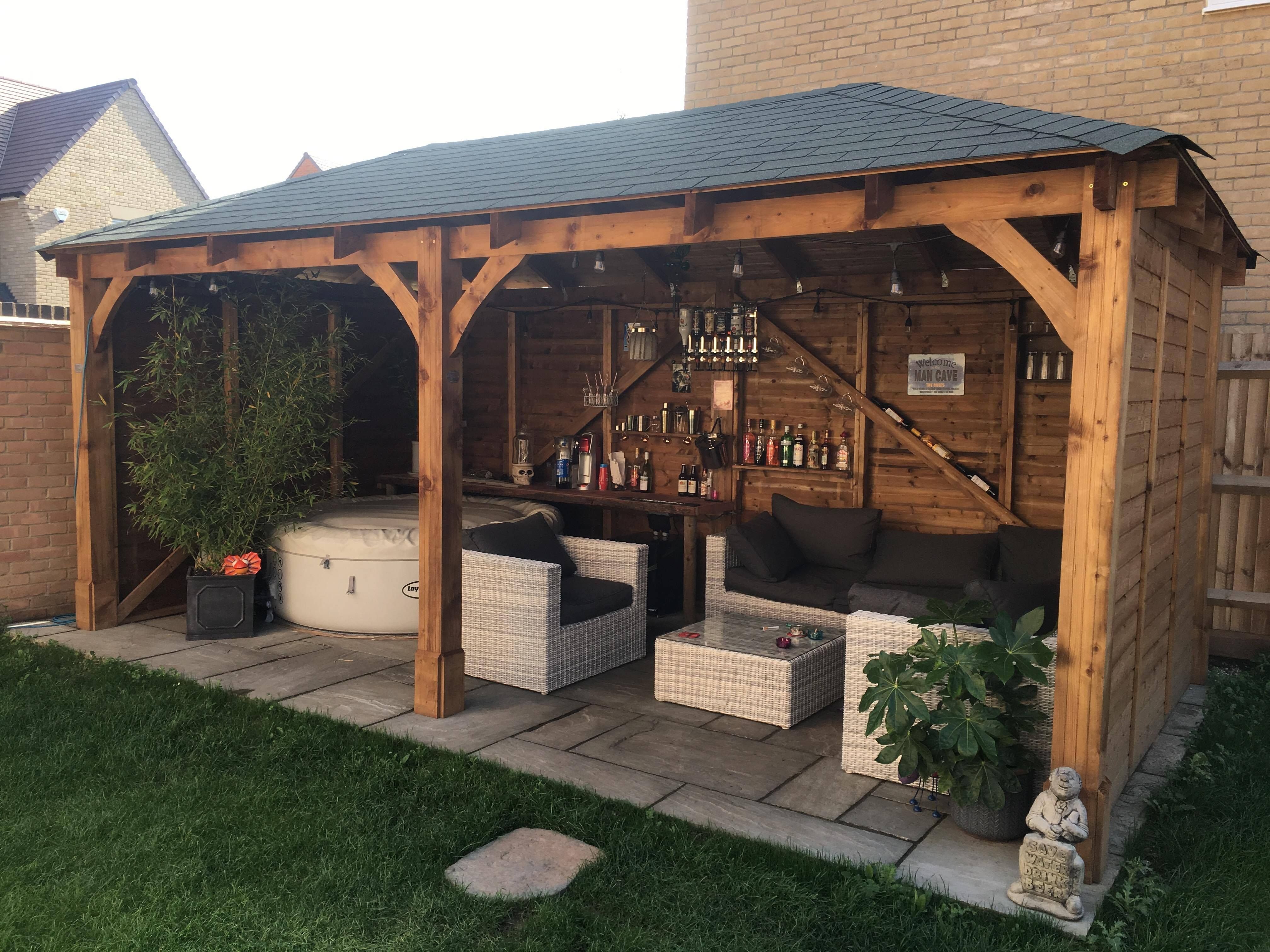 Беседка с мангальной зоной в стиле Шале