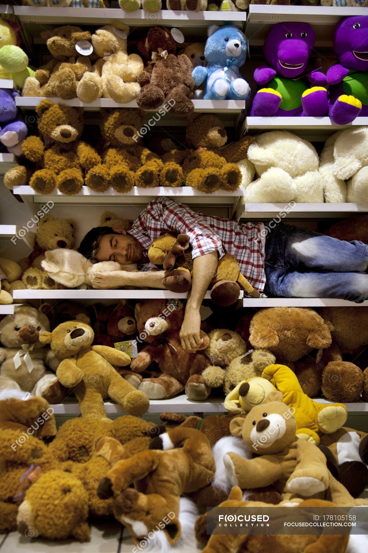 Полки с плюшевыми игрушками