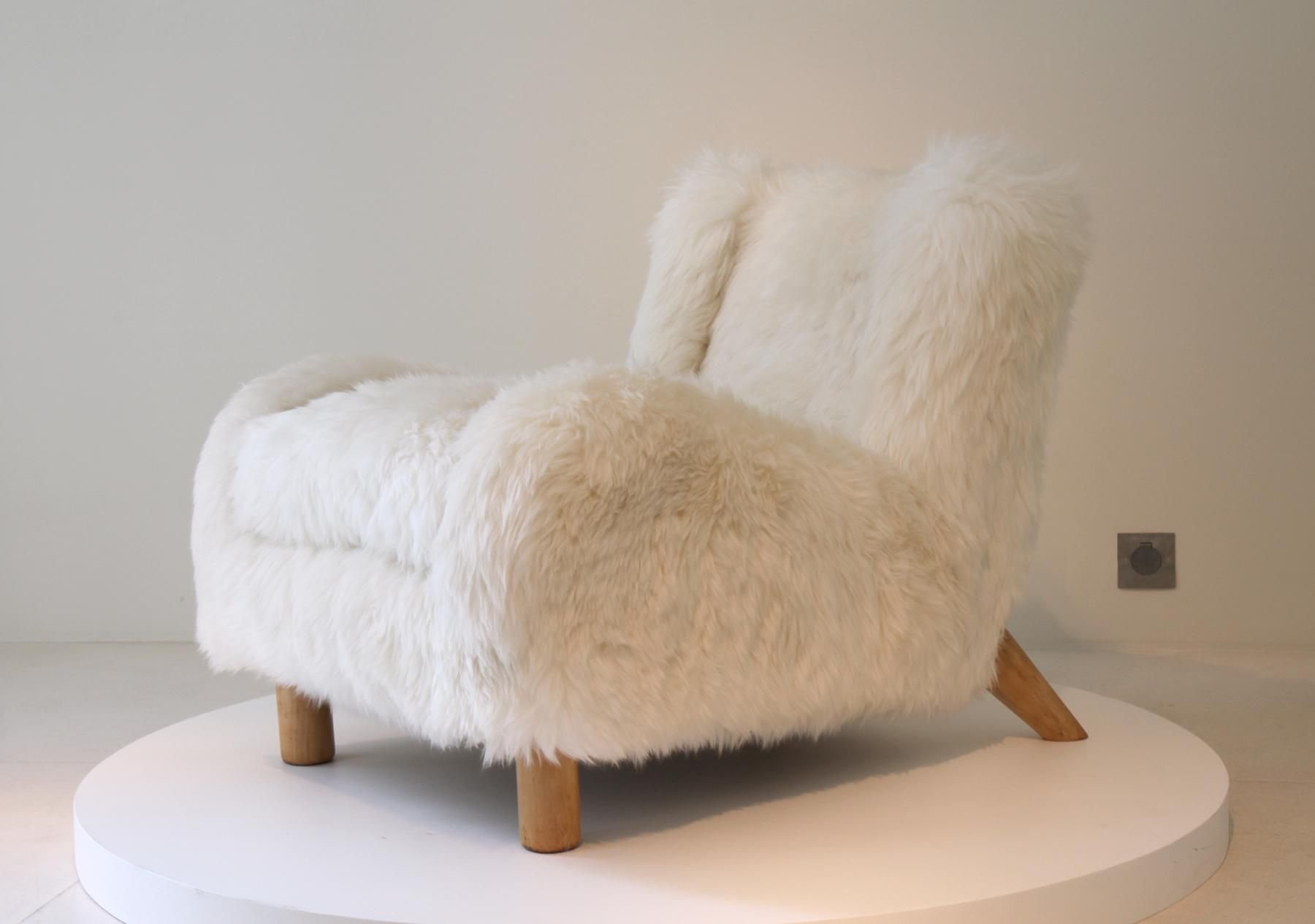 Кресло меховое белое