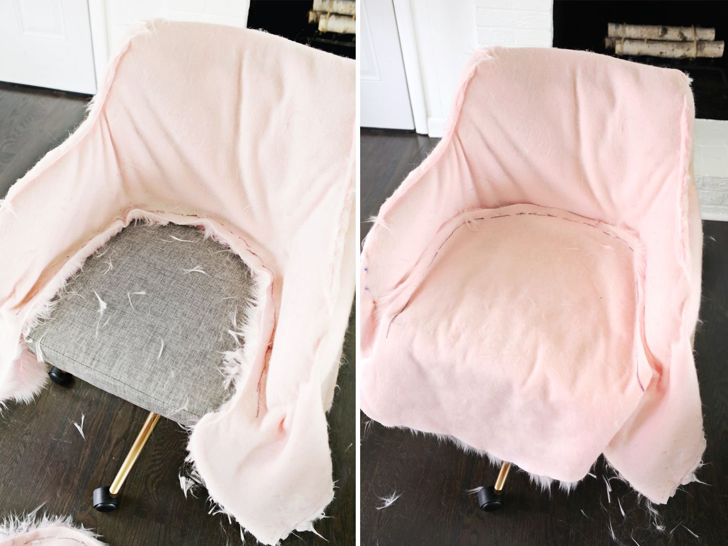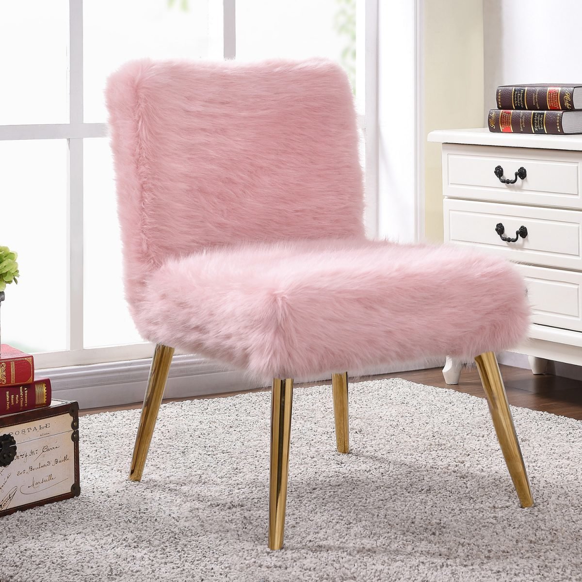 Розовый меховой стул