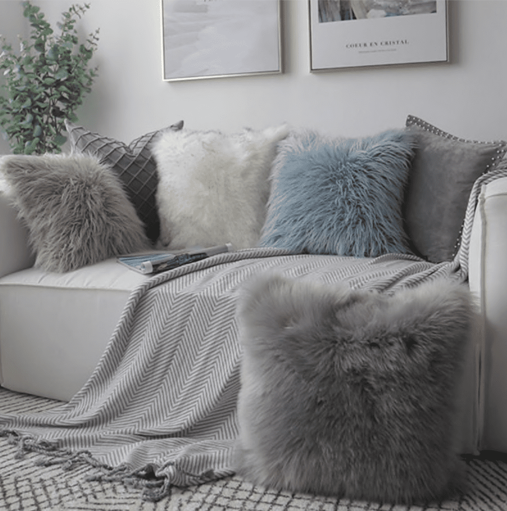 Меховые подушки в интерьере