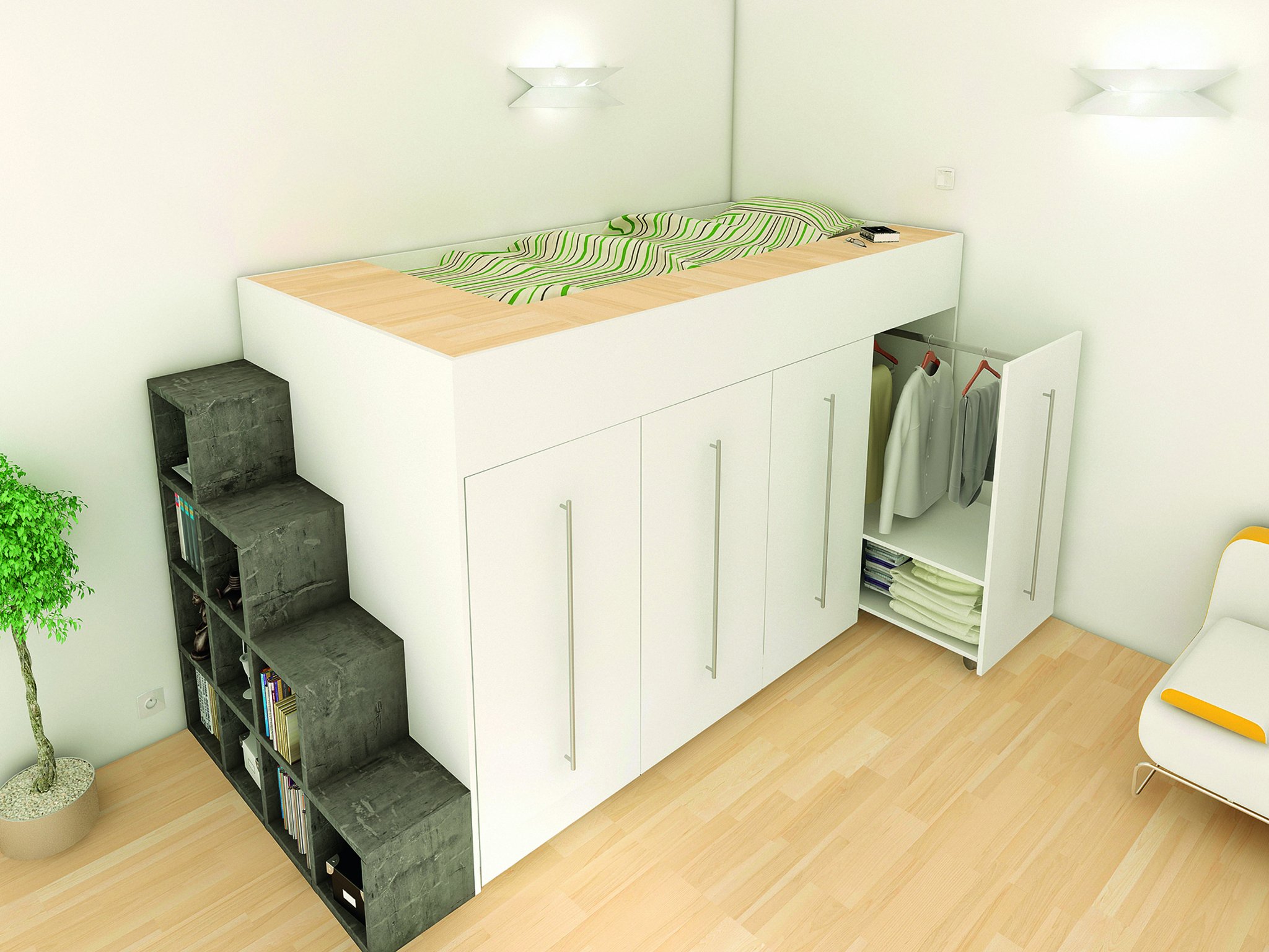 Высокая кровать шкаф