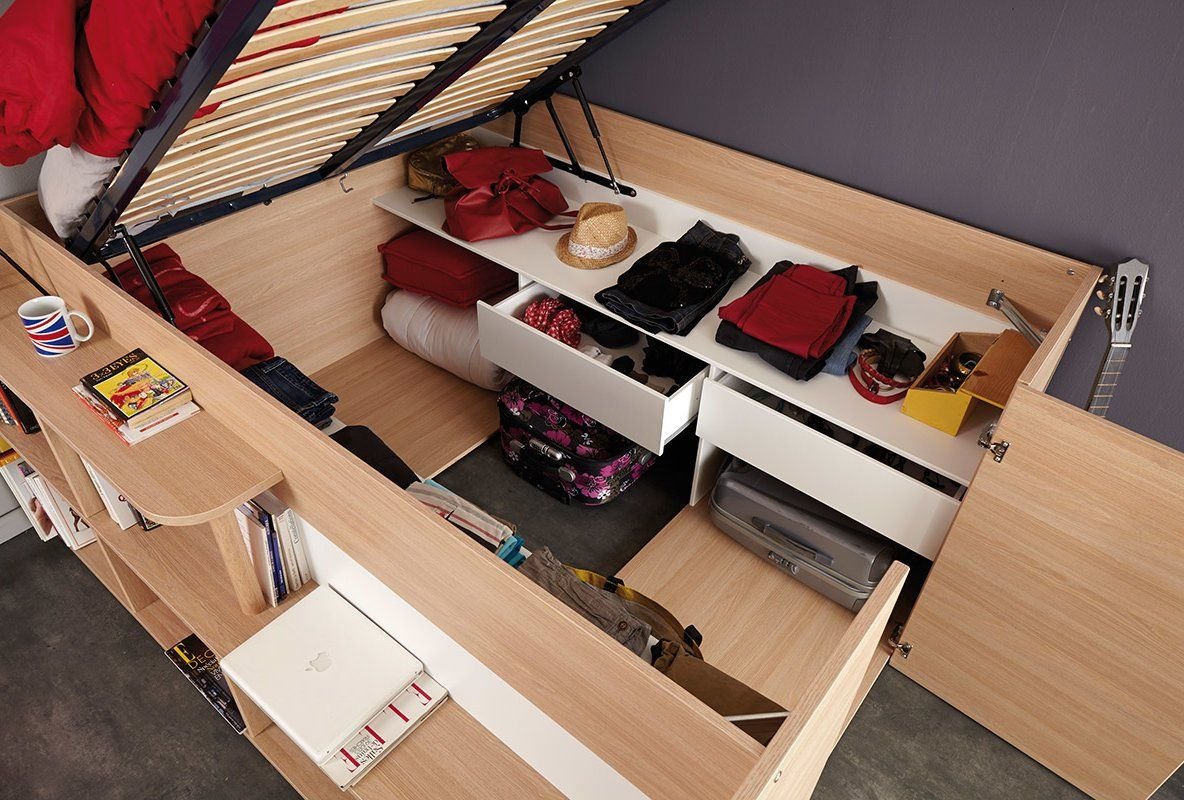 Высокая кровать с местом для хранения