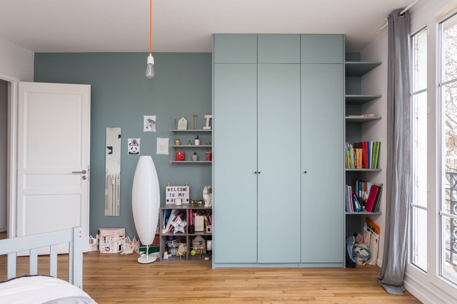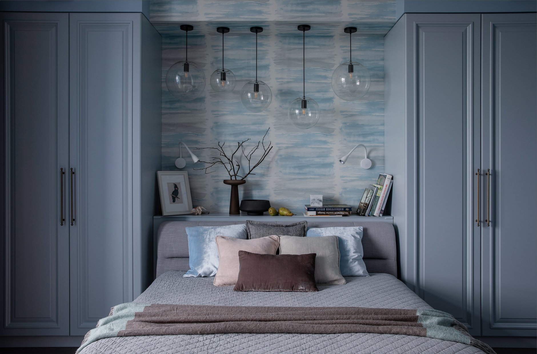 Серо голубой шкаф в интерьере