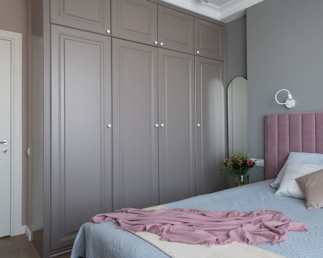 Спальня в серых тонах со шкафом купе