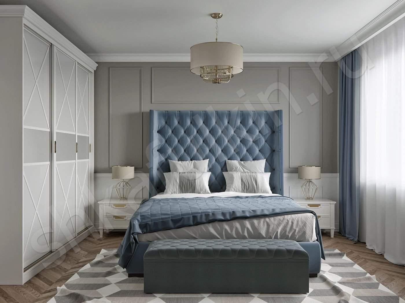 Интерьер спальни в холодных тонах