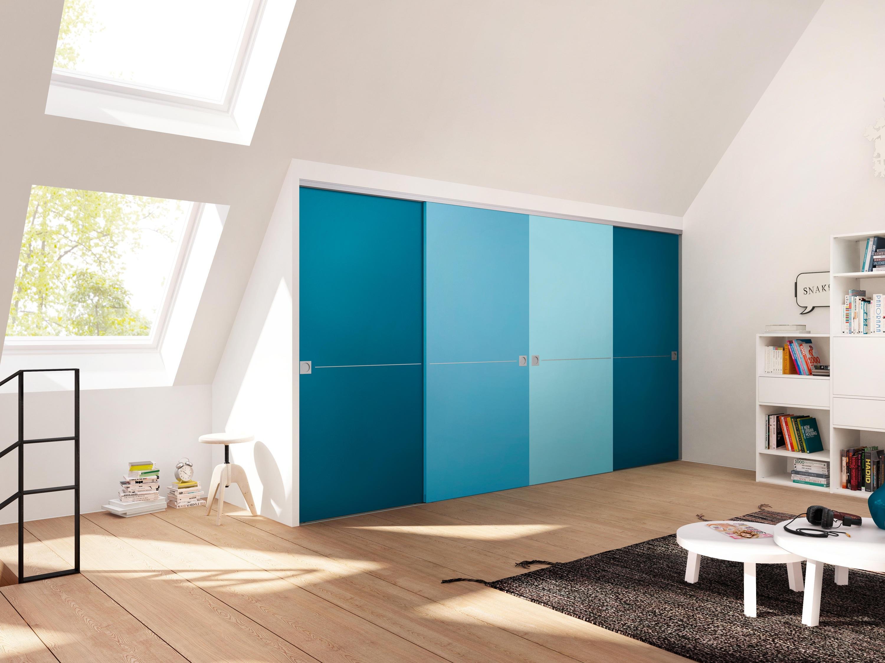 Встроенный голубой шкаф купе