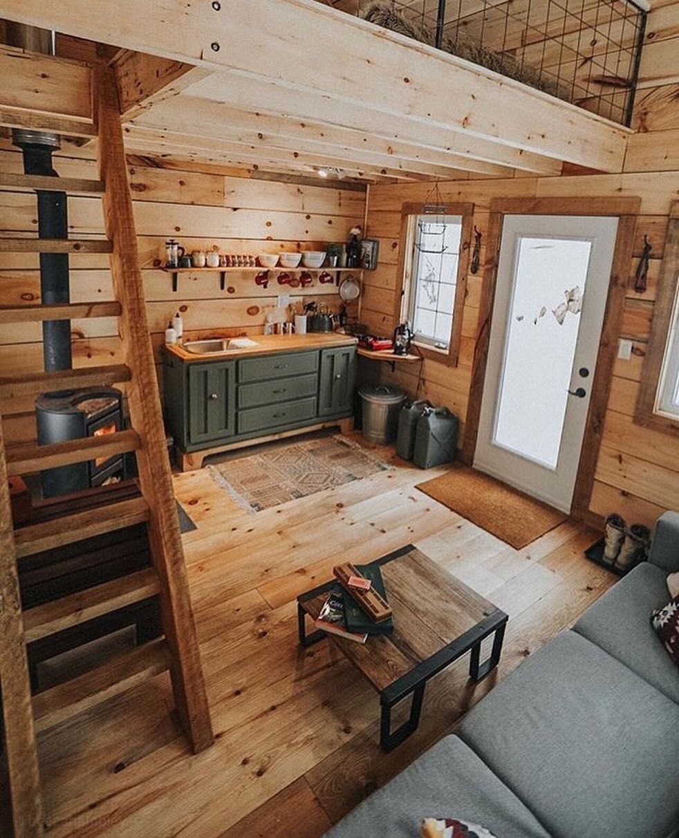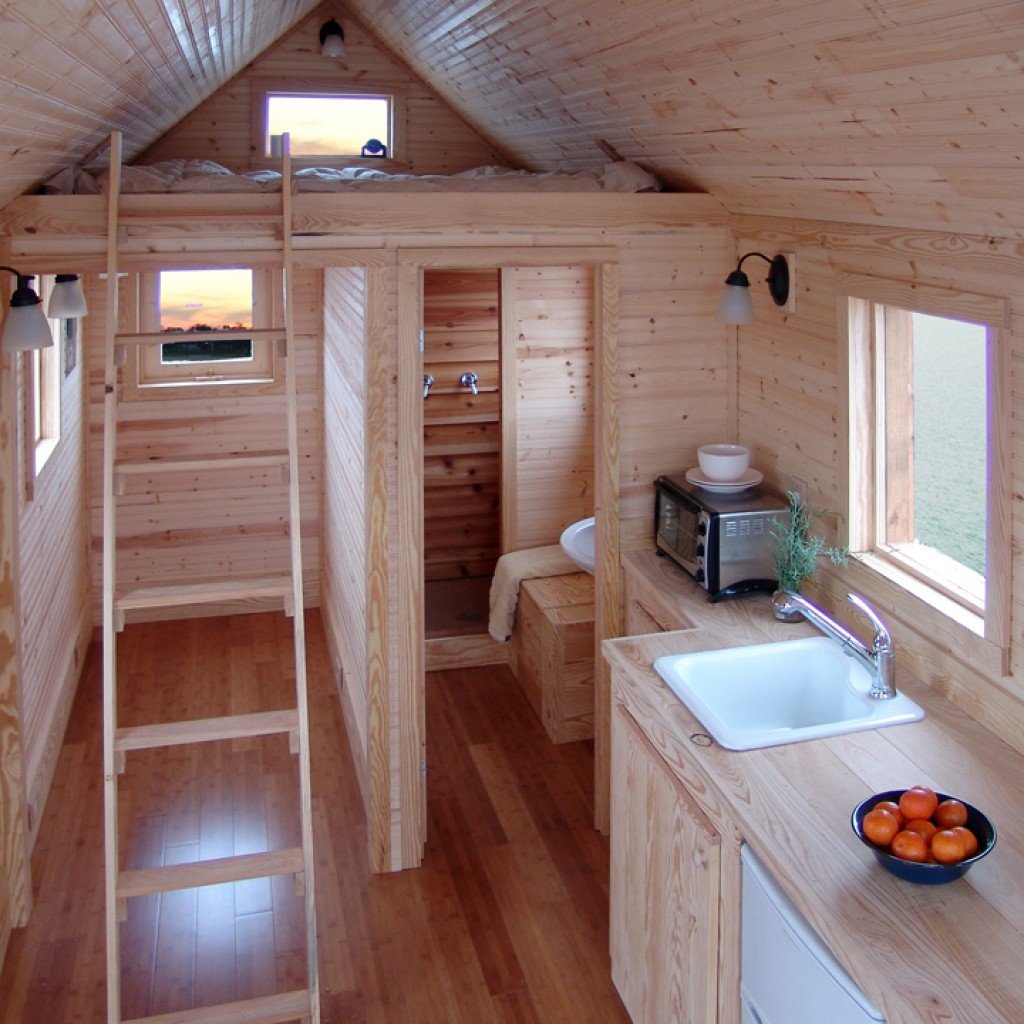Интерьер маленького домика из бруса