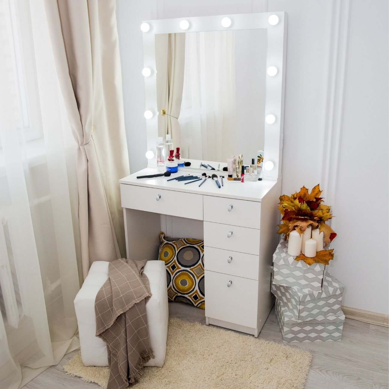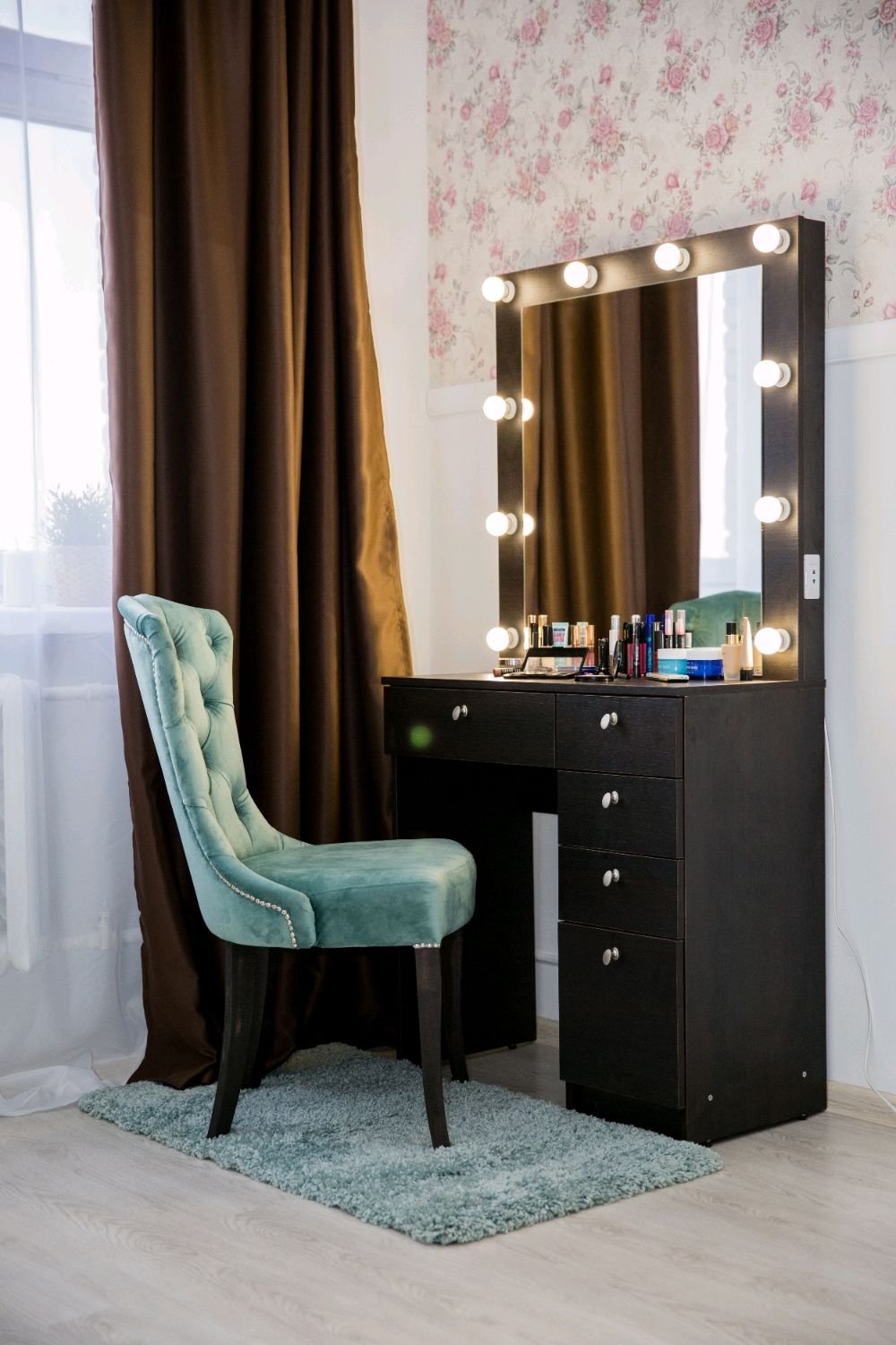 Туалетный столик Dressing Table & Stool Set Makeup Vanity led Mirror Organizer Drawers Wood Desk