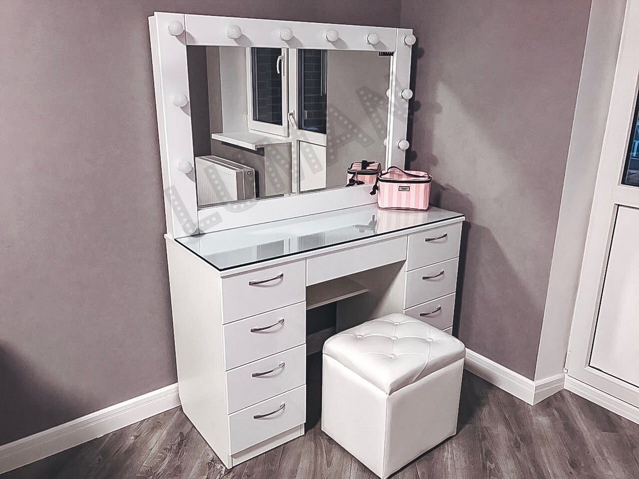 Столик гримерный с зеркалом (2 ящика, зеркало 1000х650)