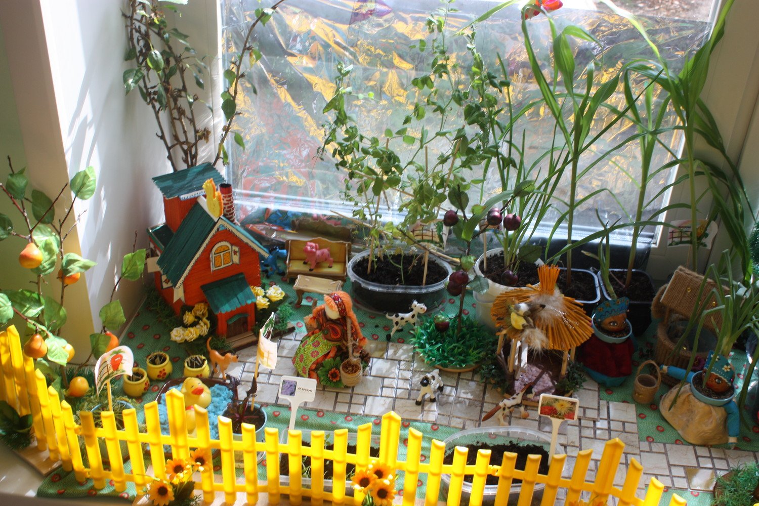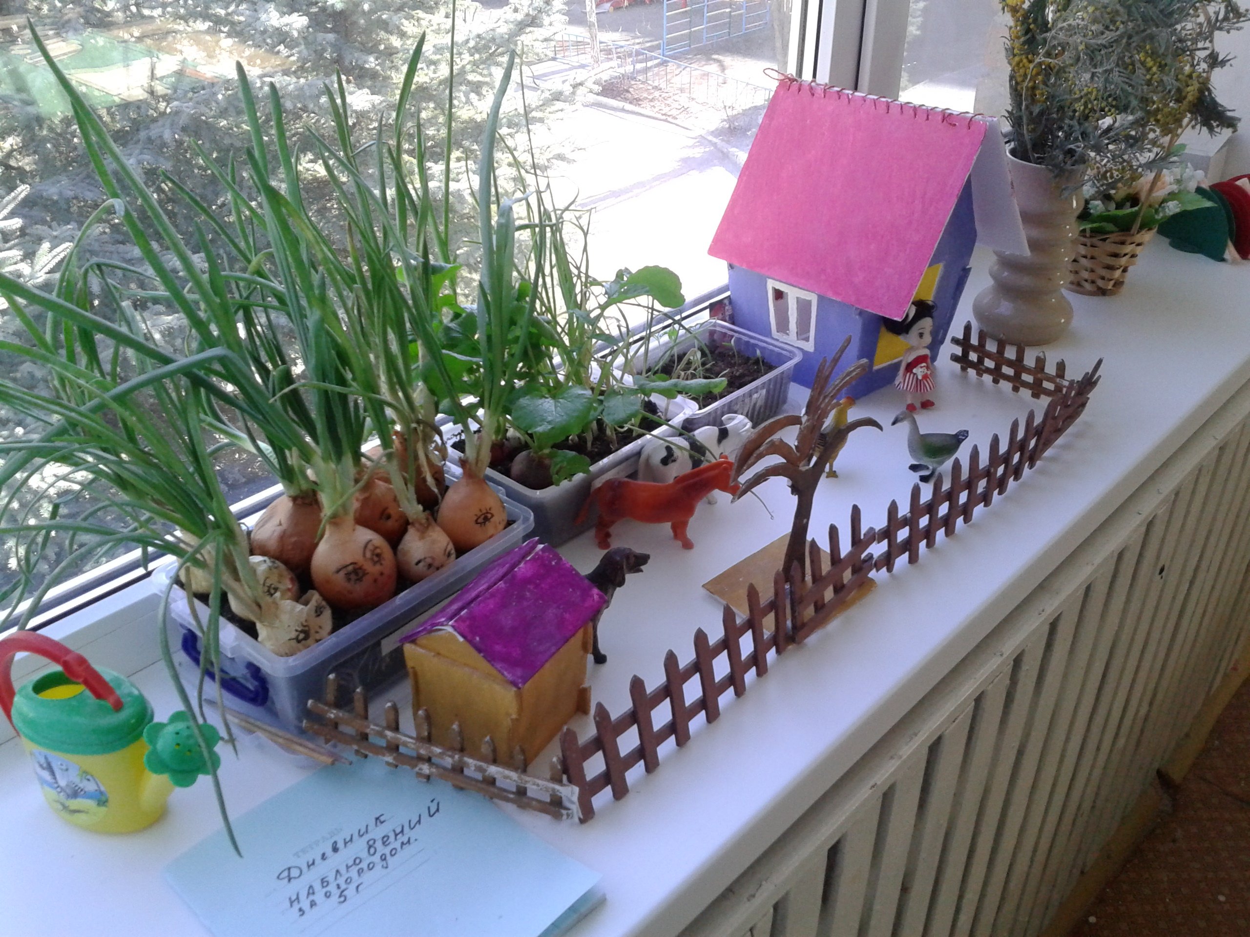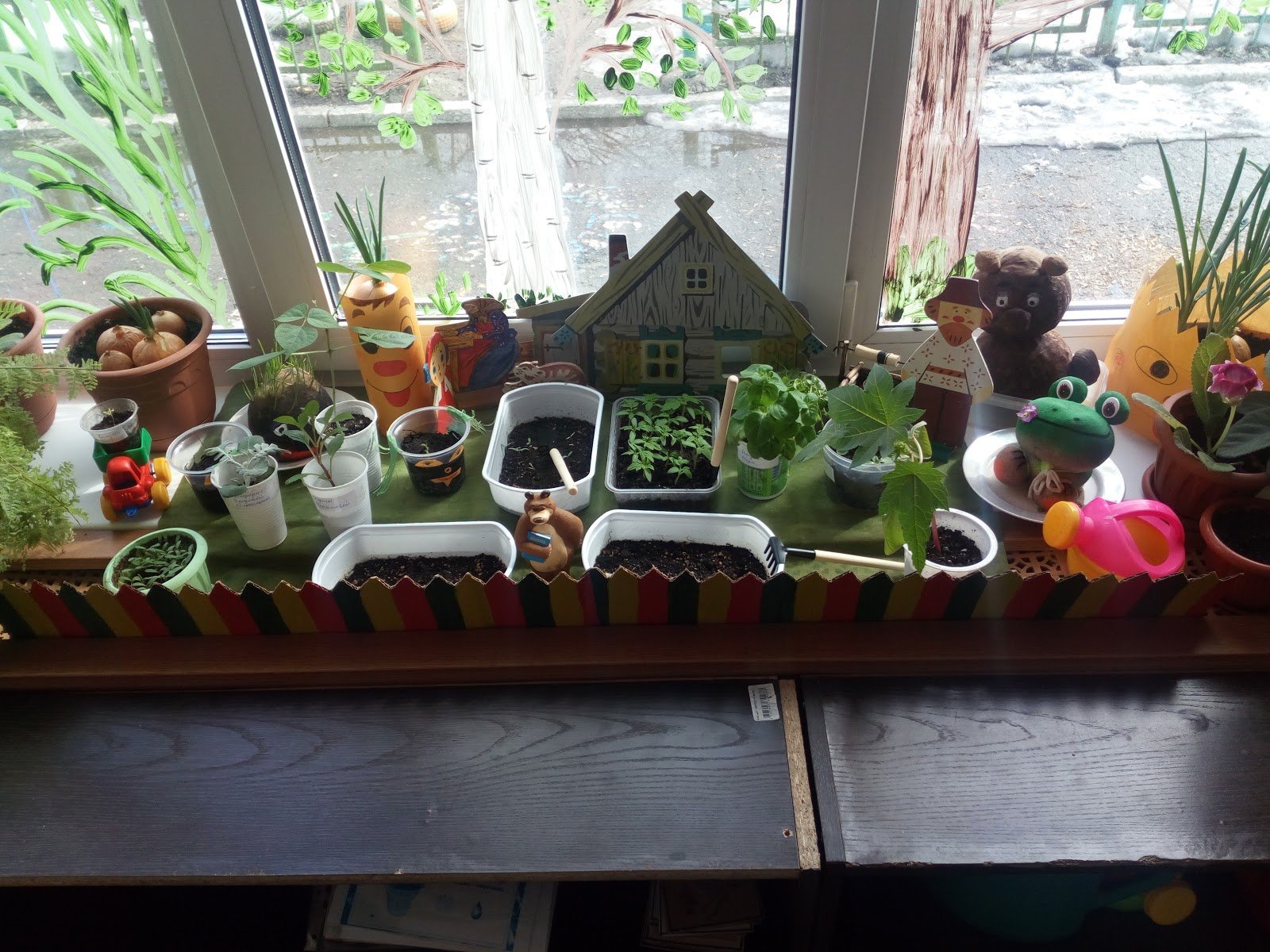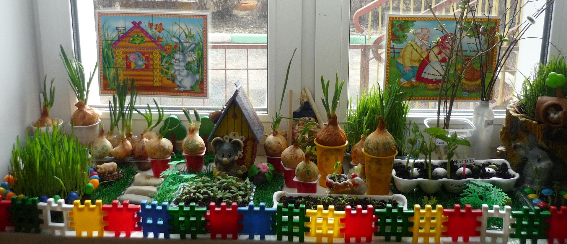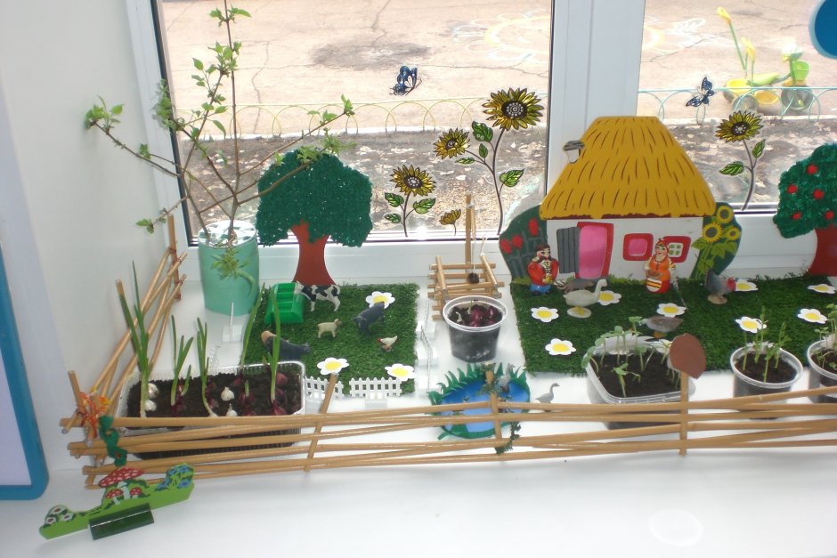 Заборчик для огорода на окне в детском