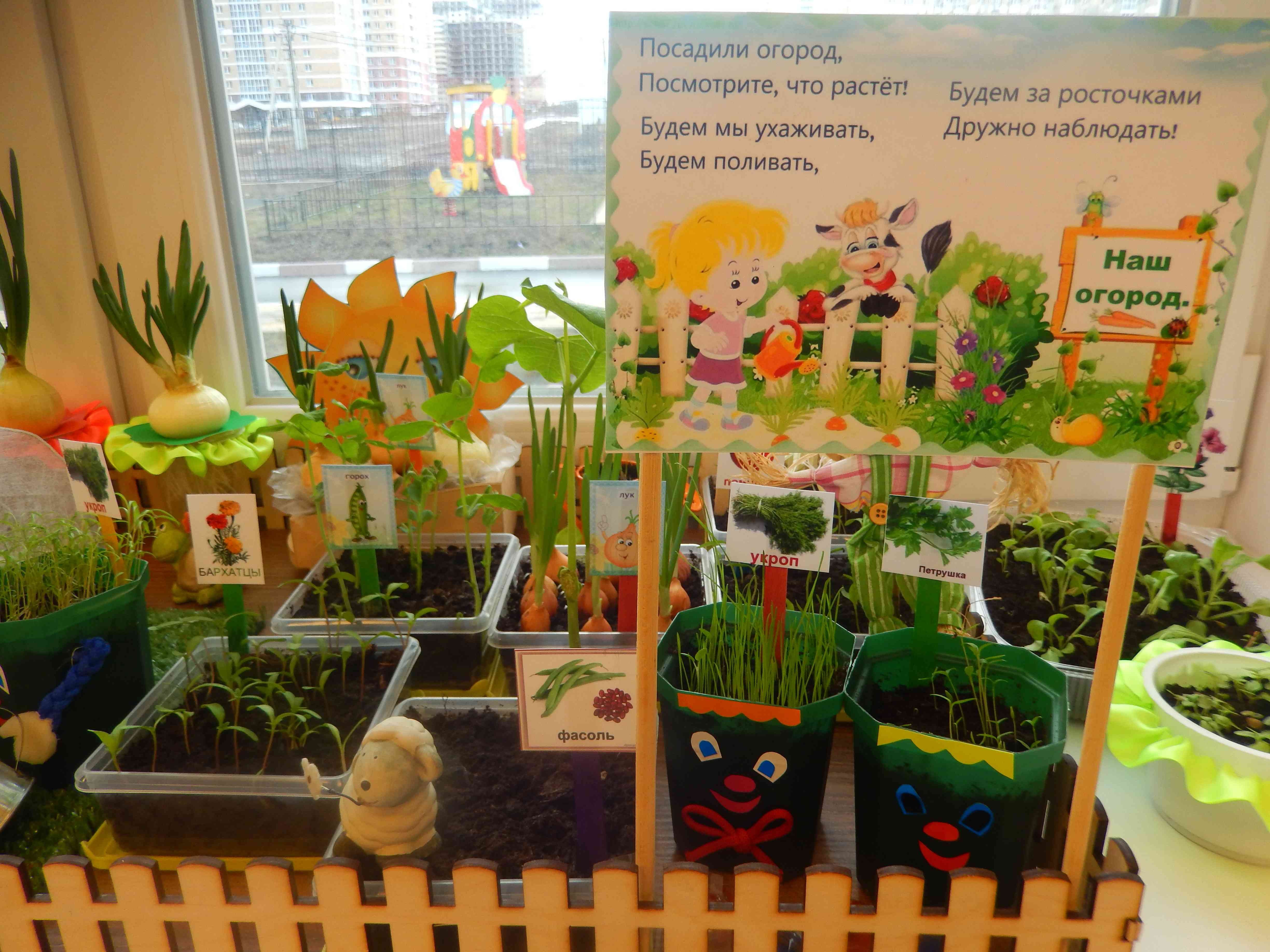 Огород на подоконнике в детском саду оформление