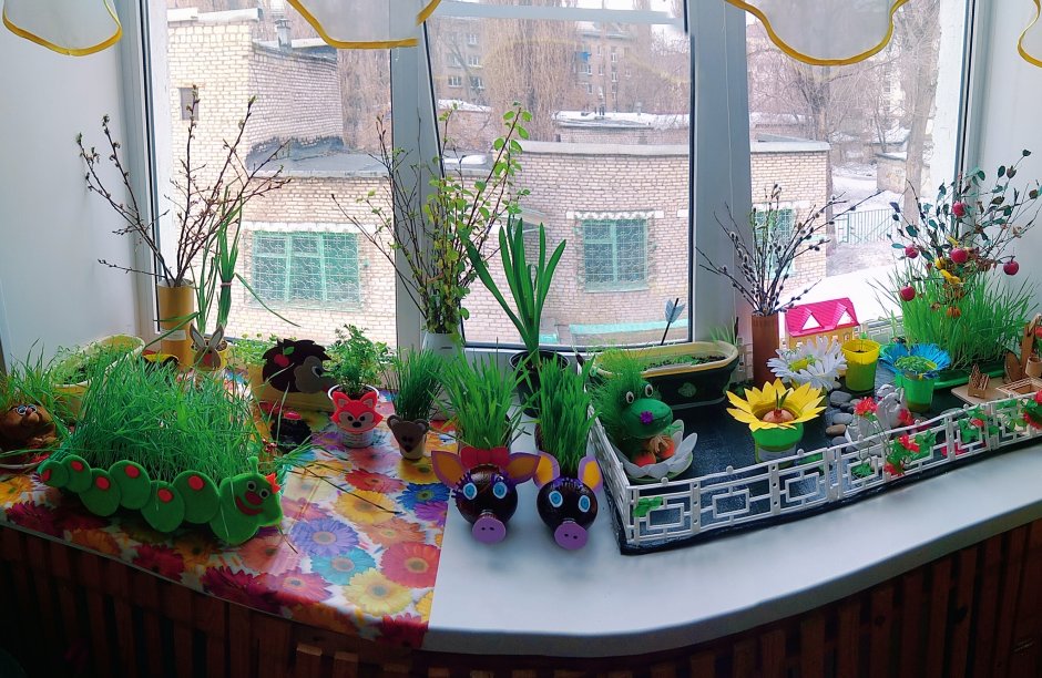 Украшение подоконника в детском саду