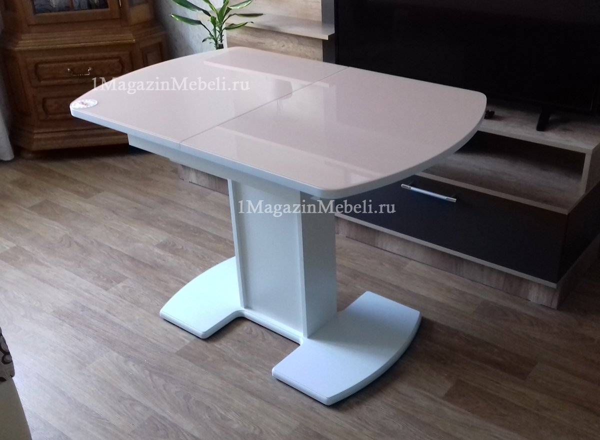 Стол Zetta 90 на 60 раздвижной белый со стеклом на одной ножке