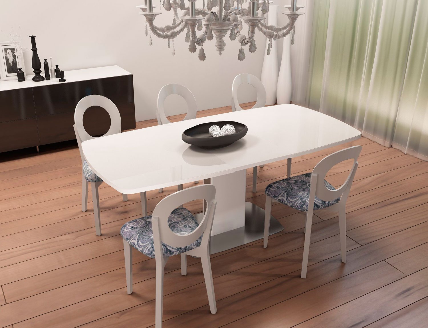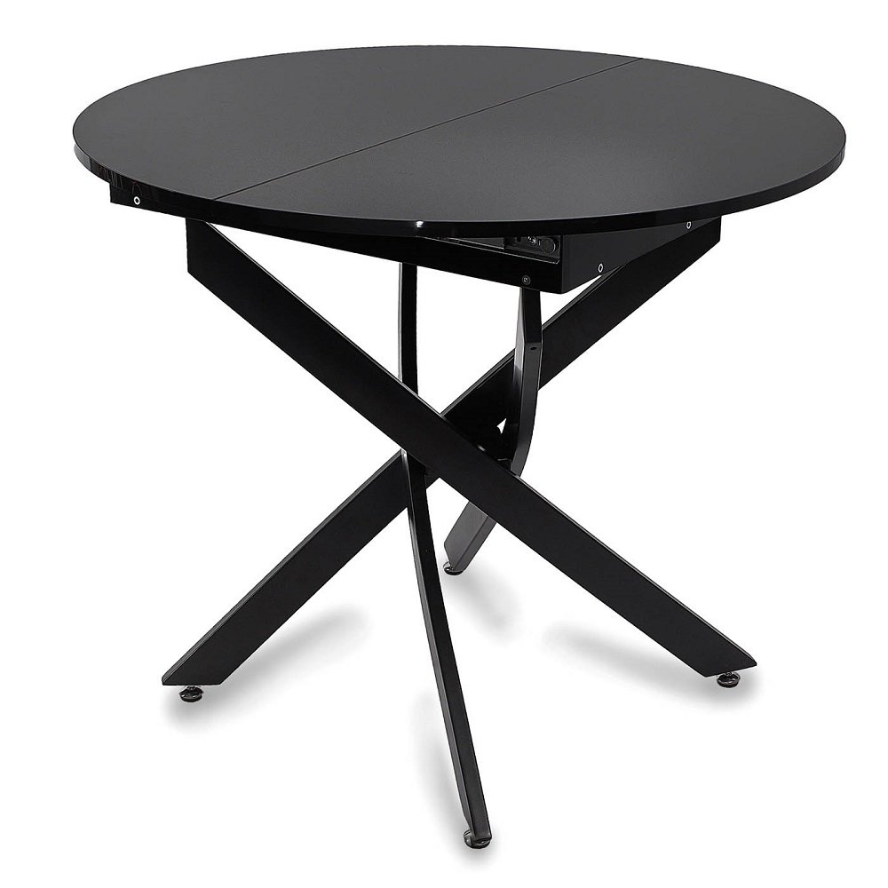 Стол круглый раздвижной 900х900(1290)х770 белый глянец(ноги хром)