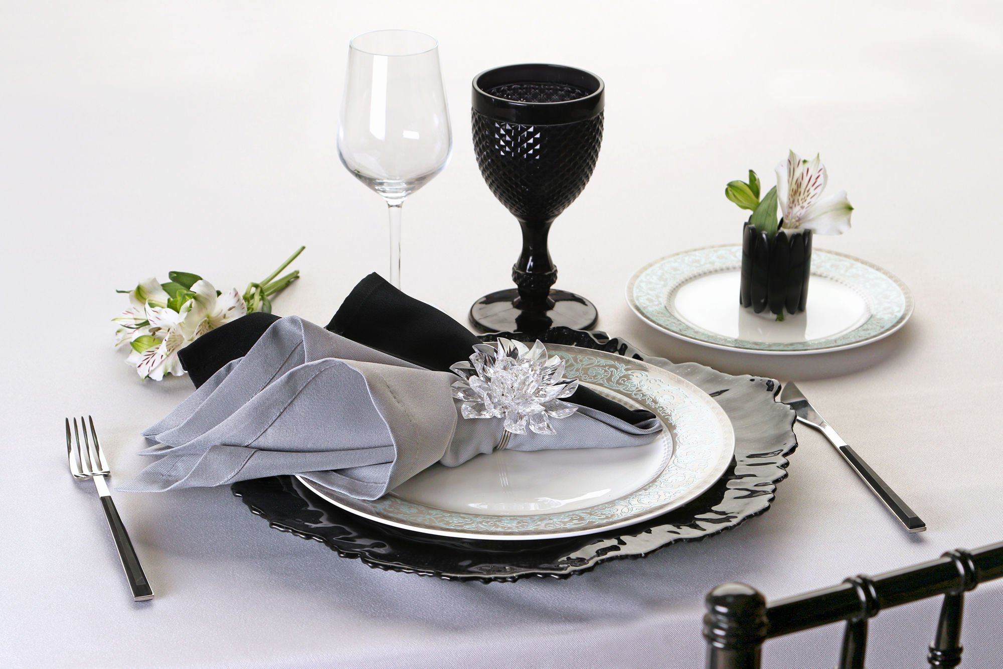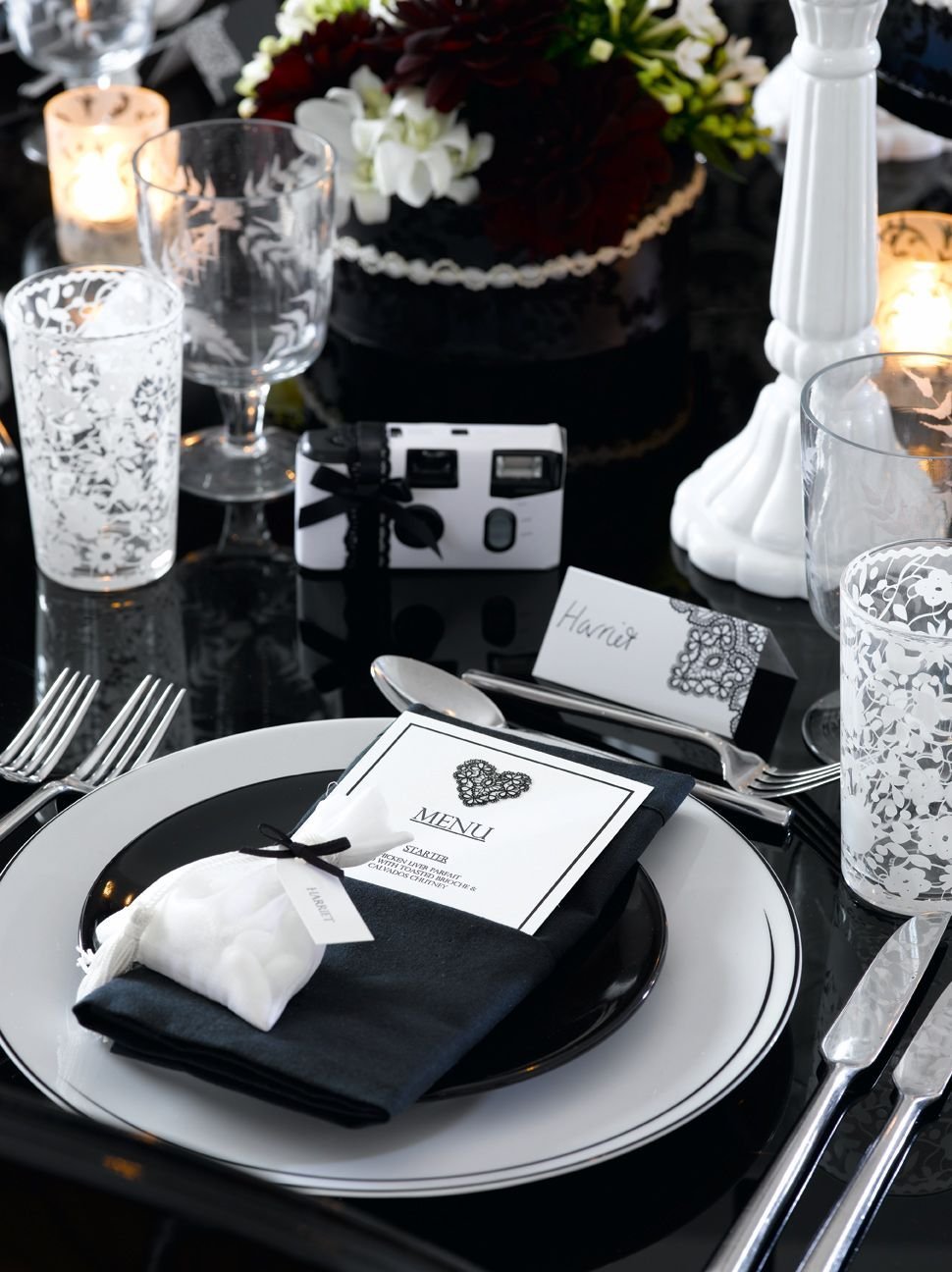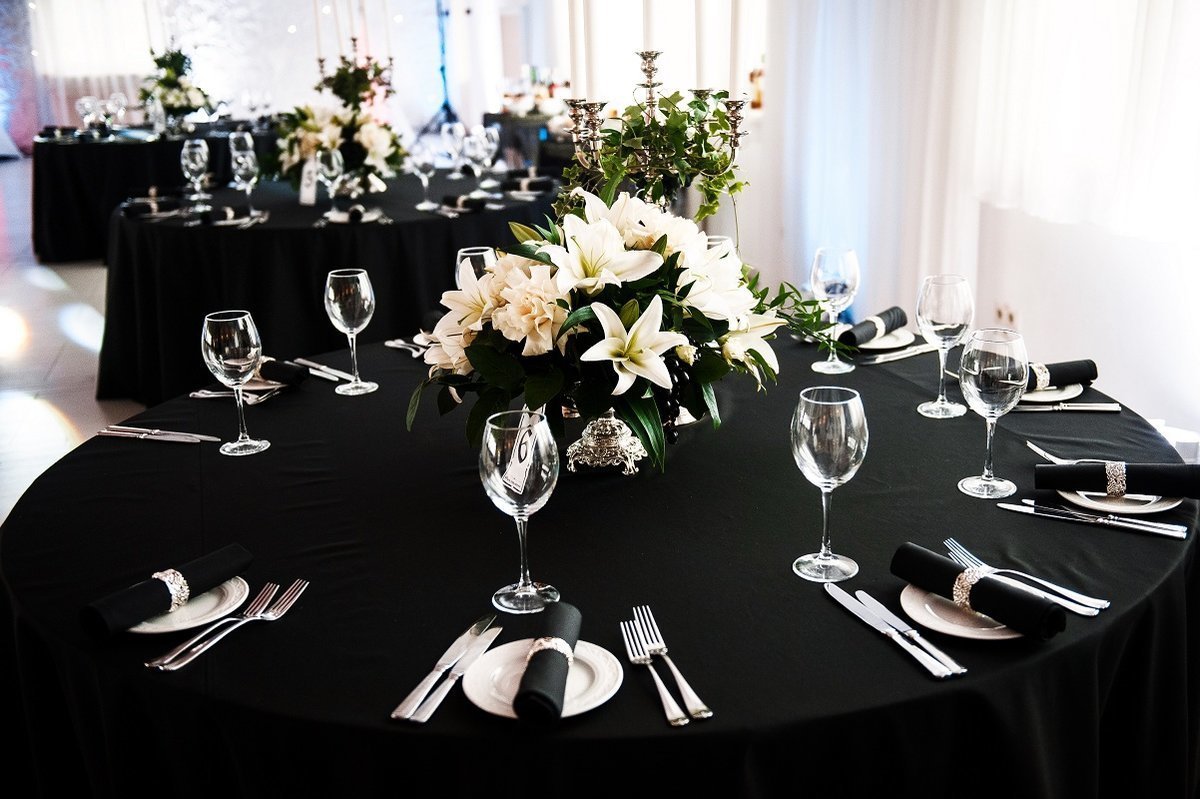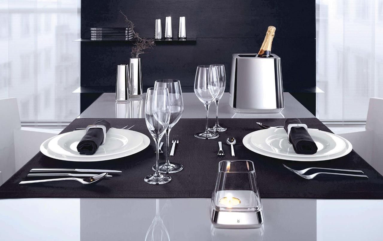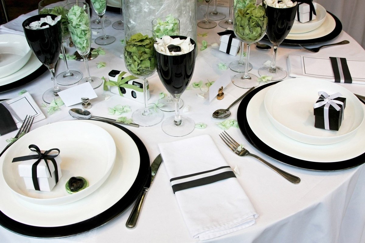 Черно белая сервировка стола