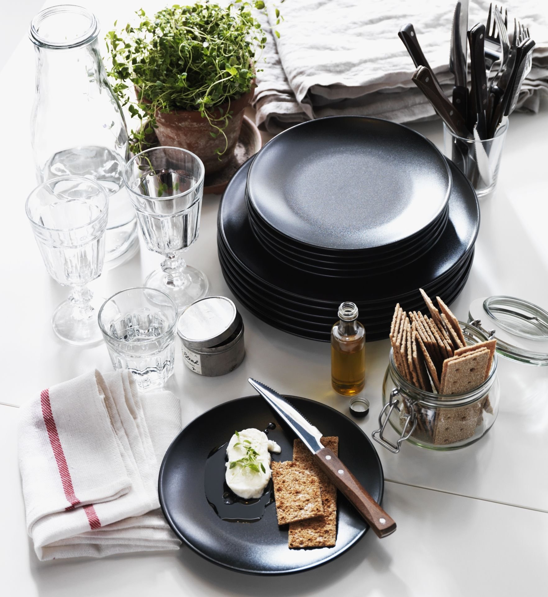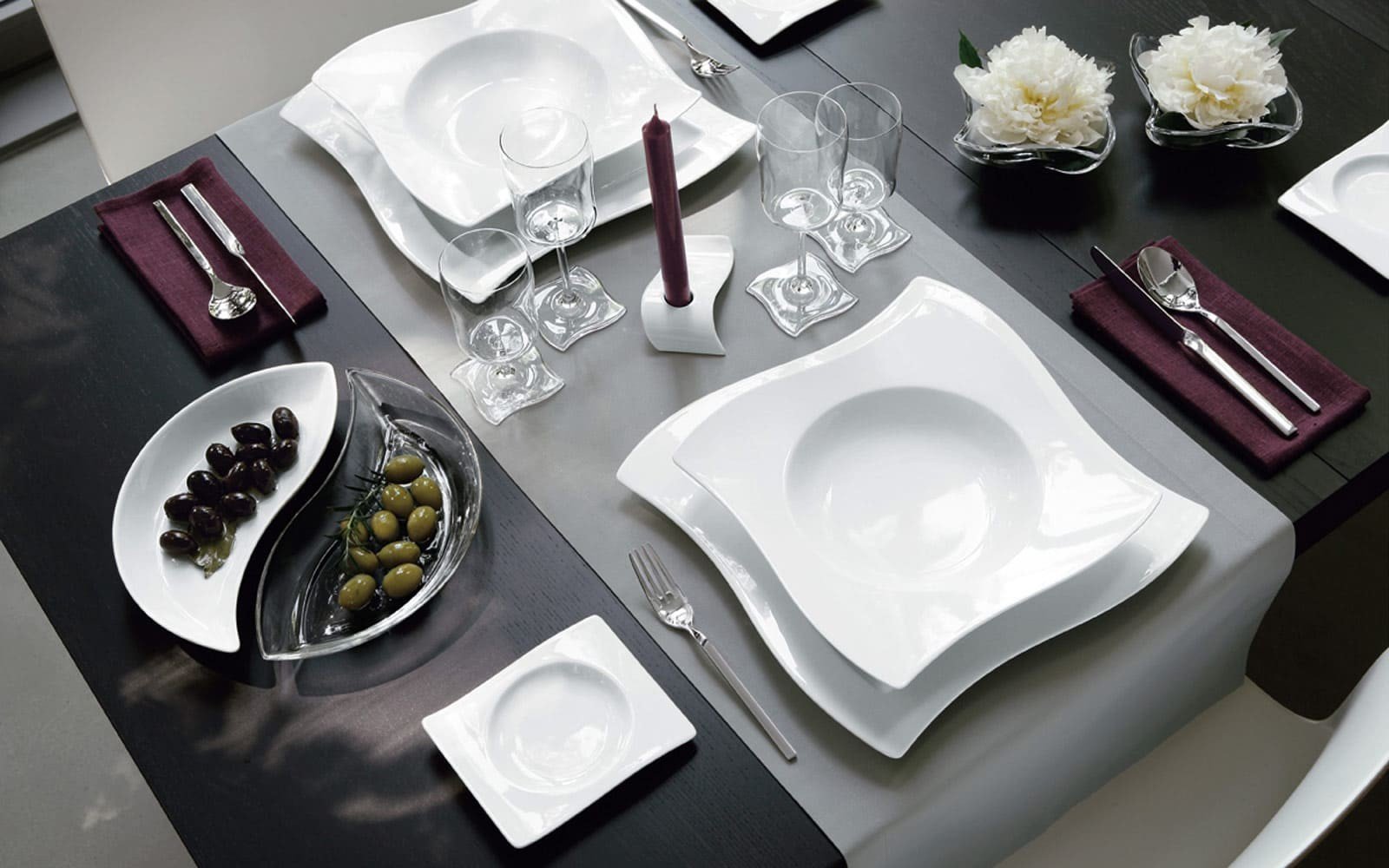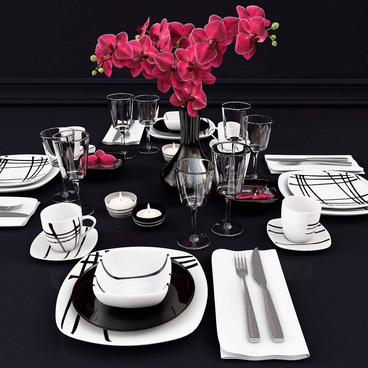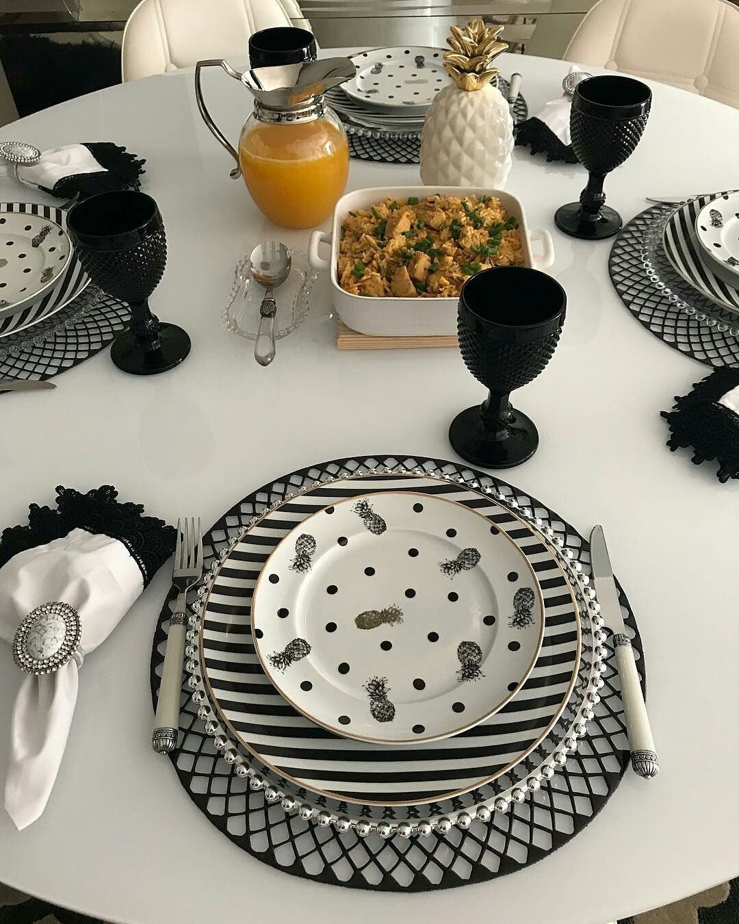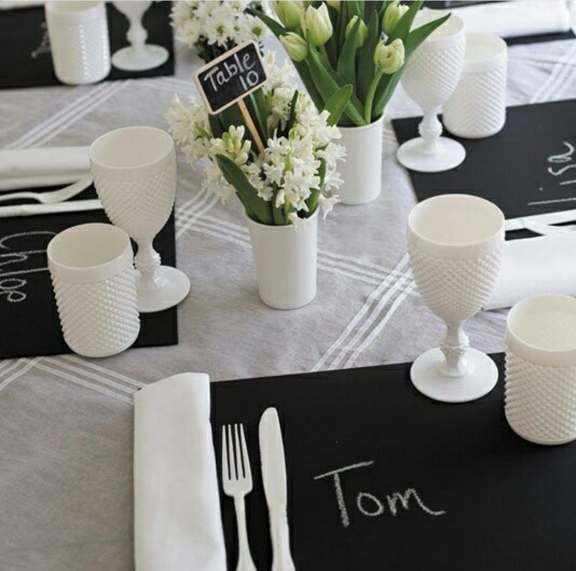 Черно белая сервировка стола