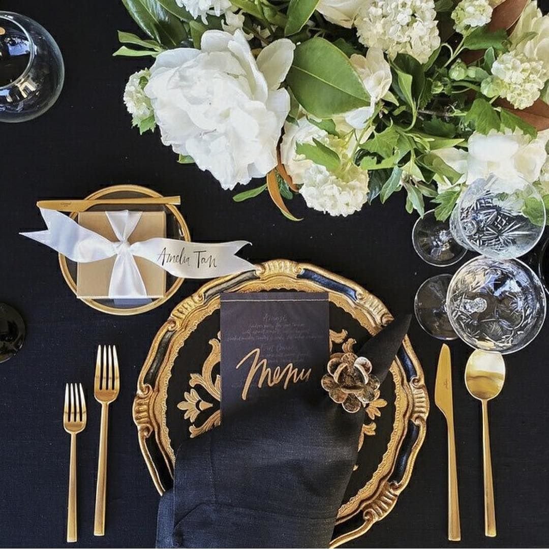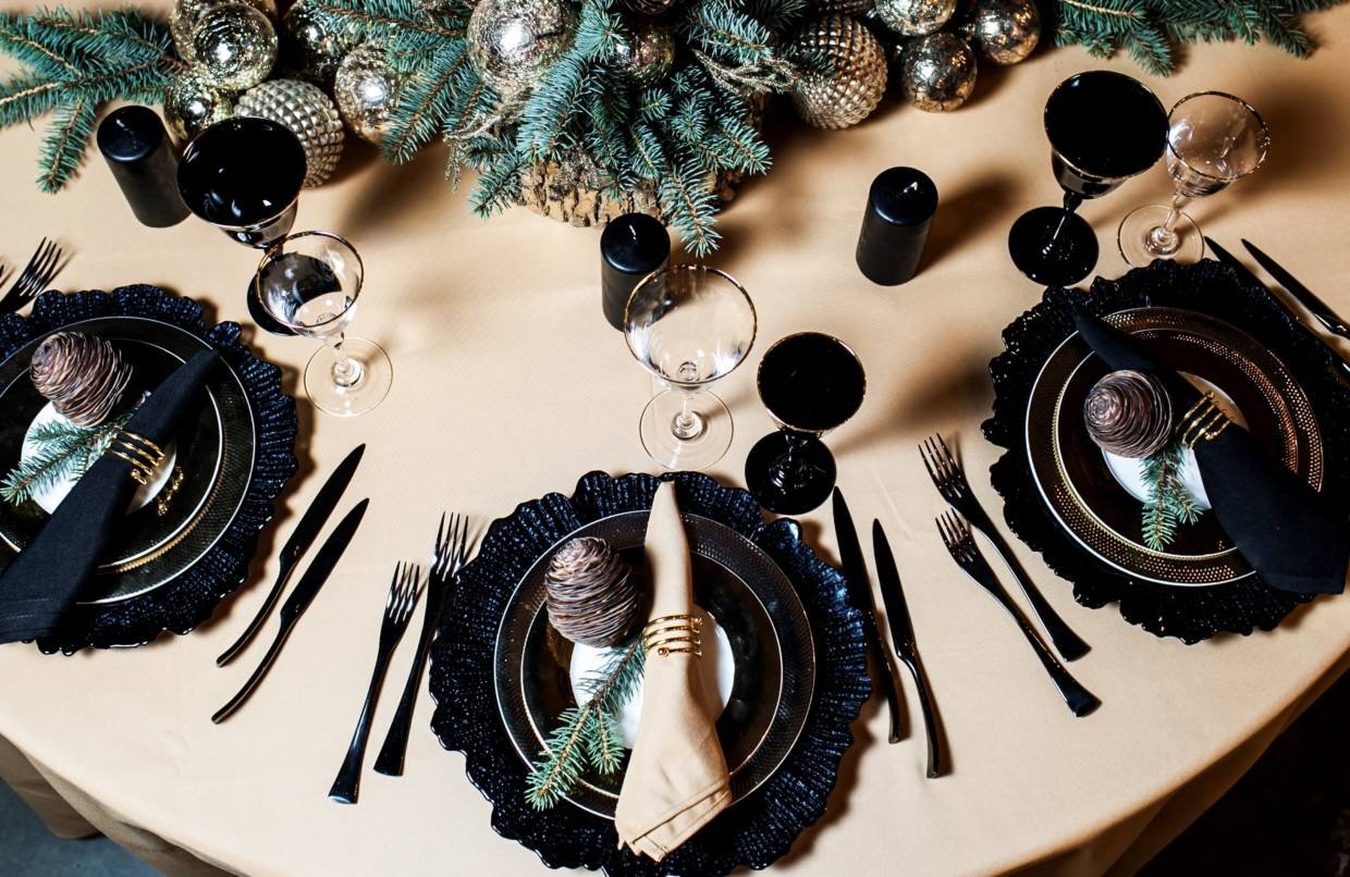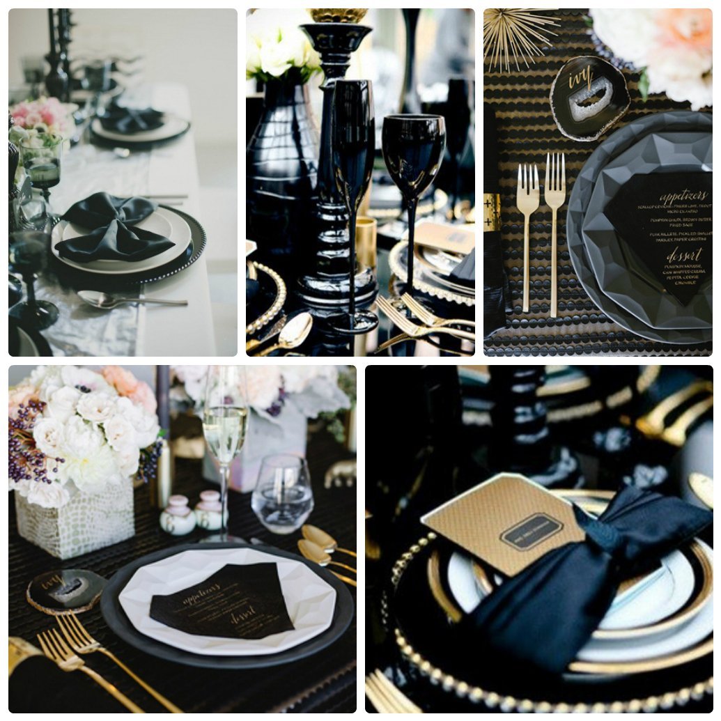 Сервировка стола в черно золотом стиле