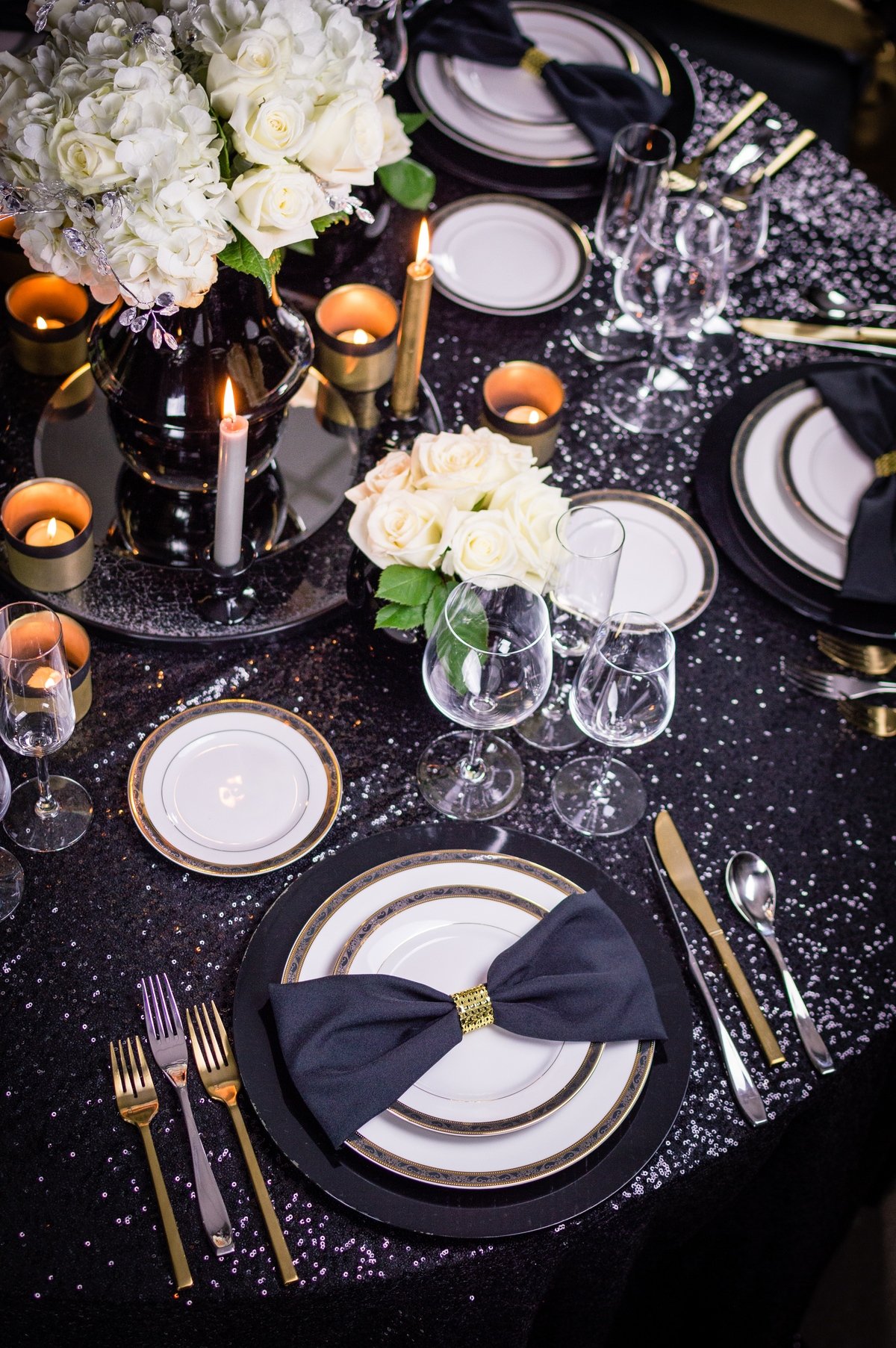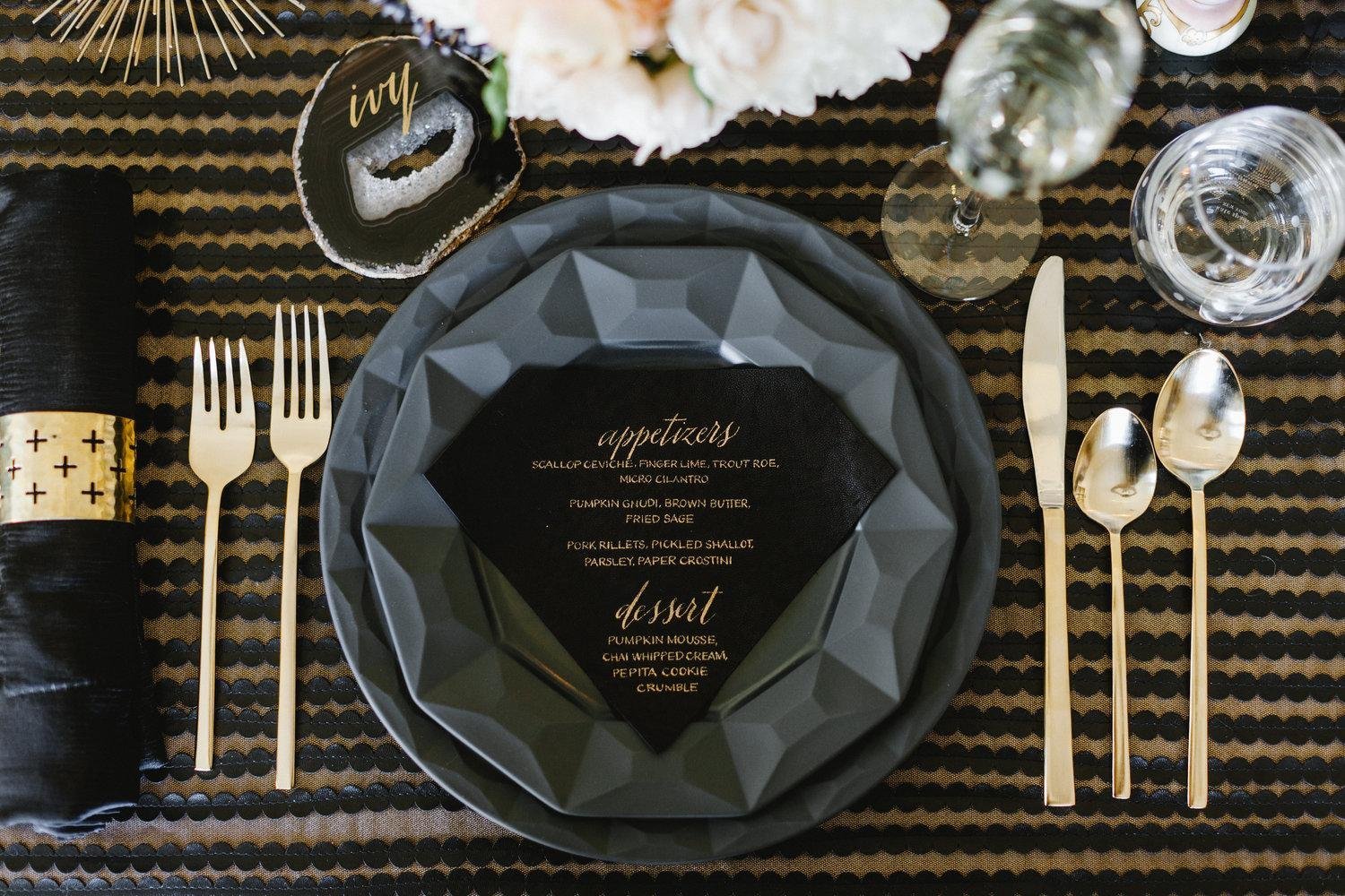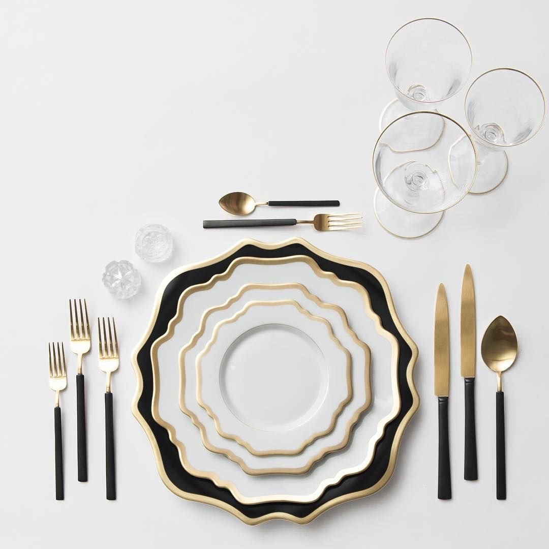 Сервировка стола в черно золотом стиле