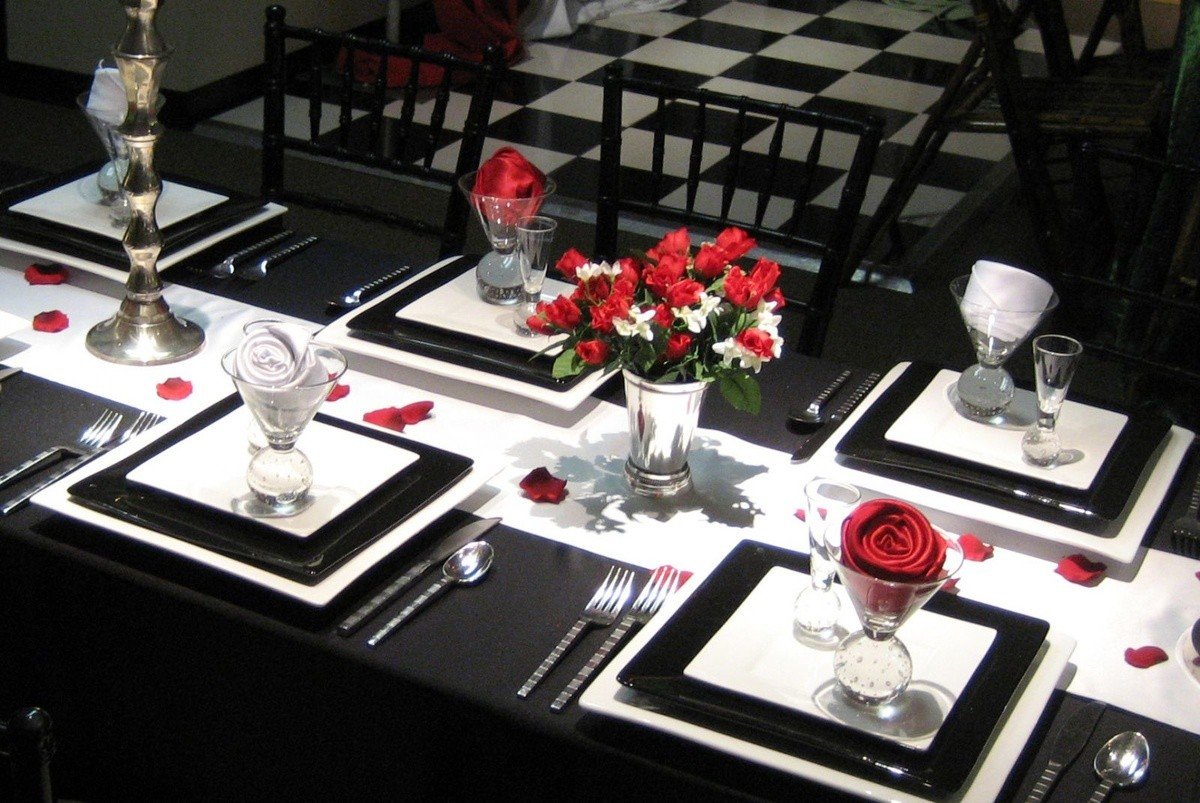 Украшение стола в стиле бело черного