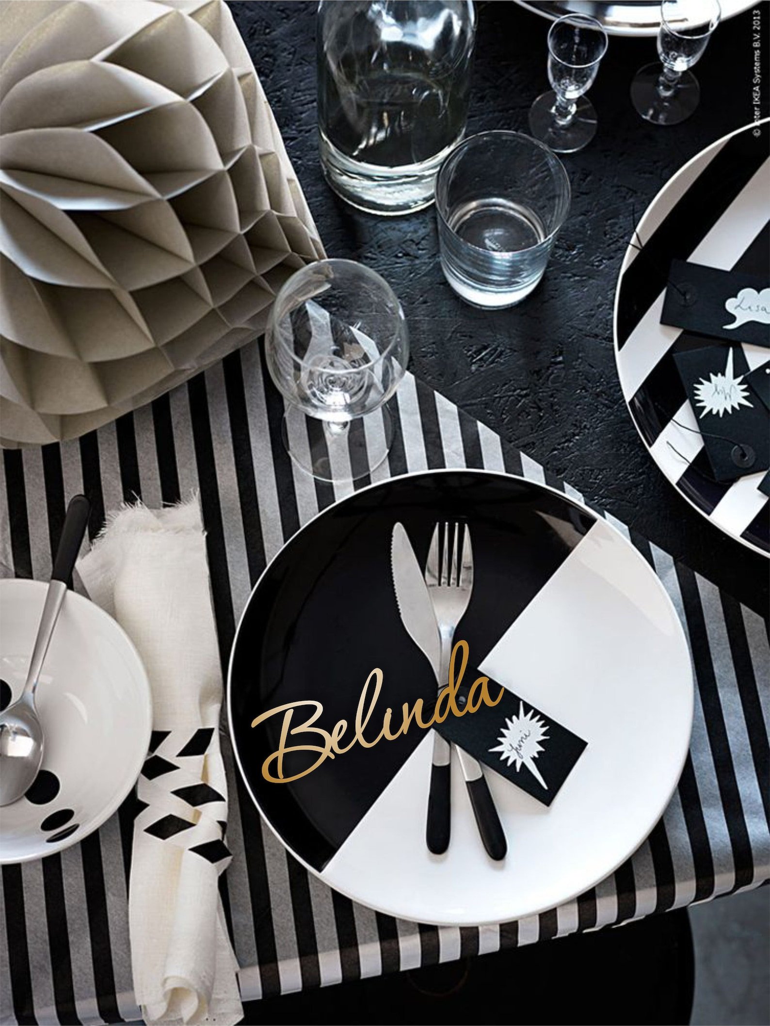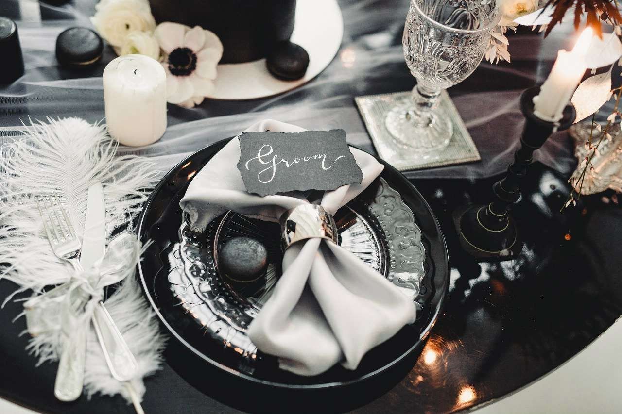 Сервировка стола в черно белом стиле