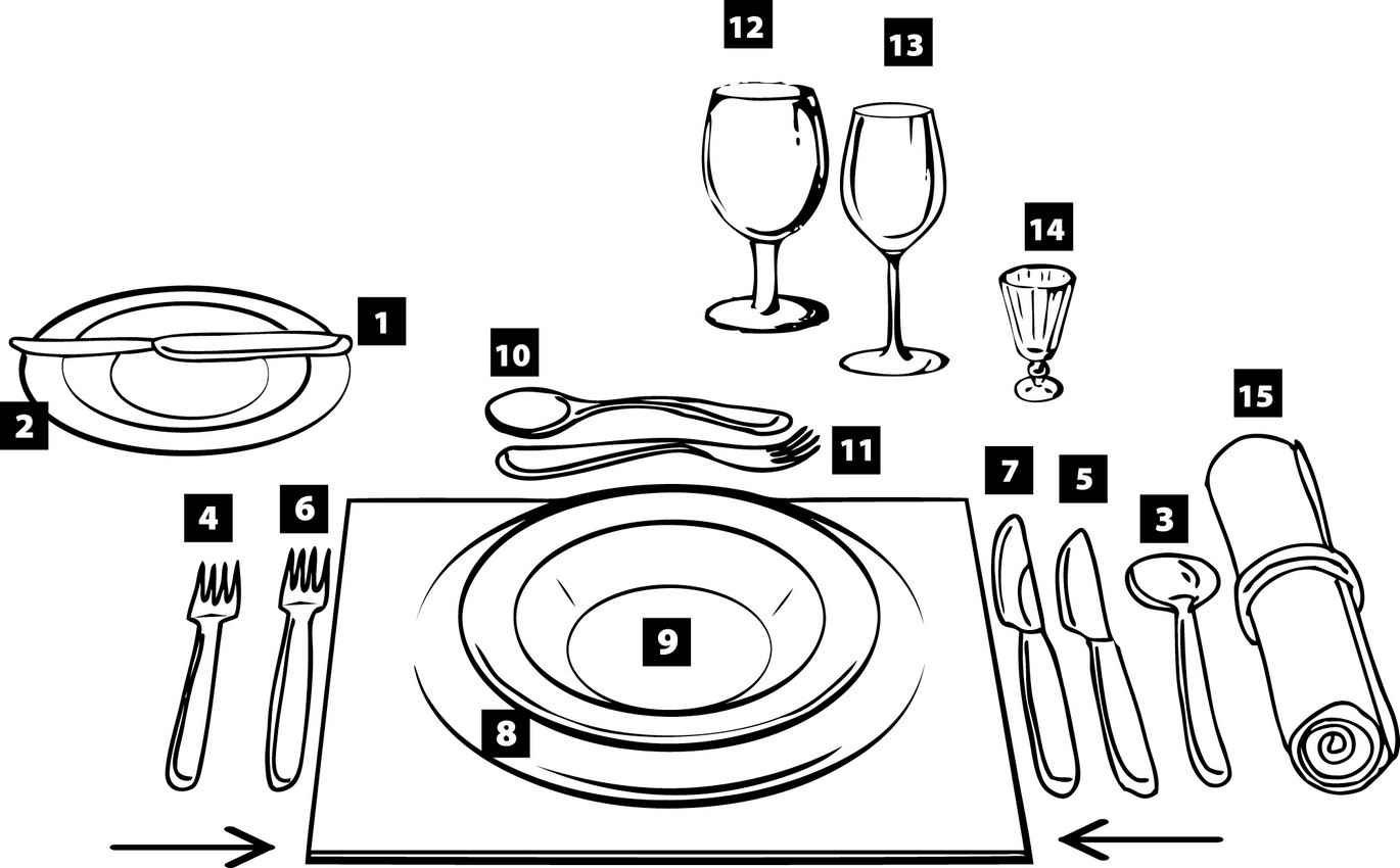 Сервировка стола на ужин в ресторане схема
