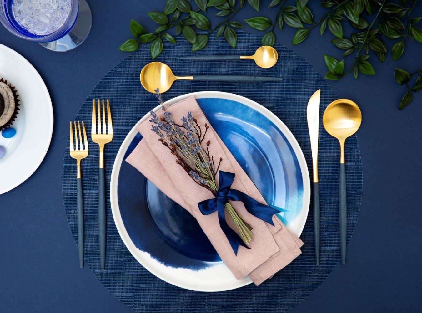 Сервировка стола синяя посуда
