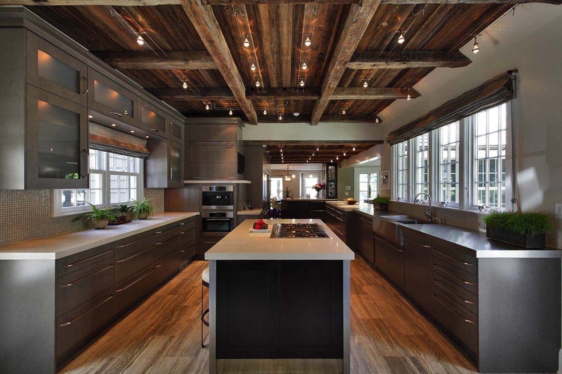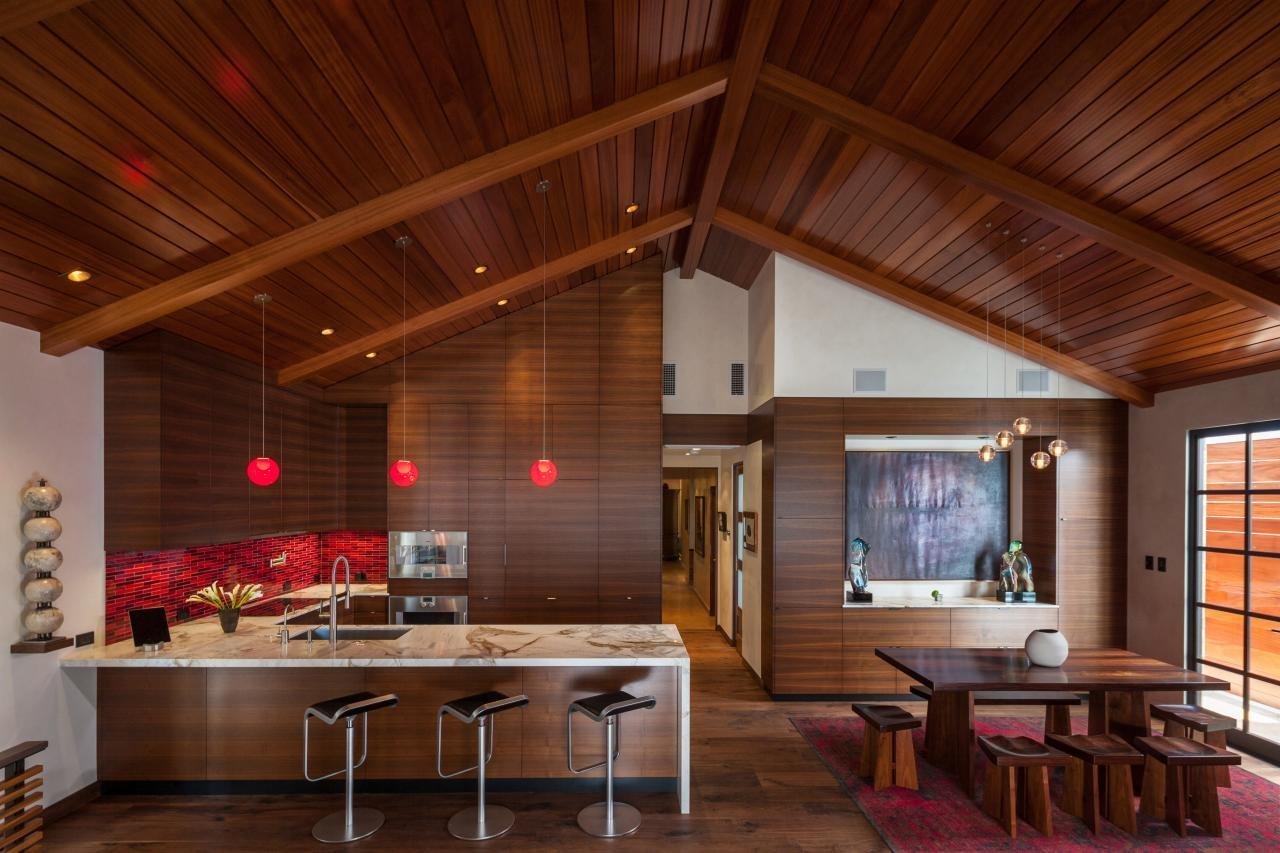 Деревянный потолок на кухне