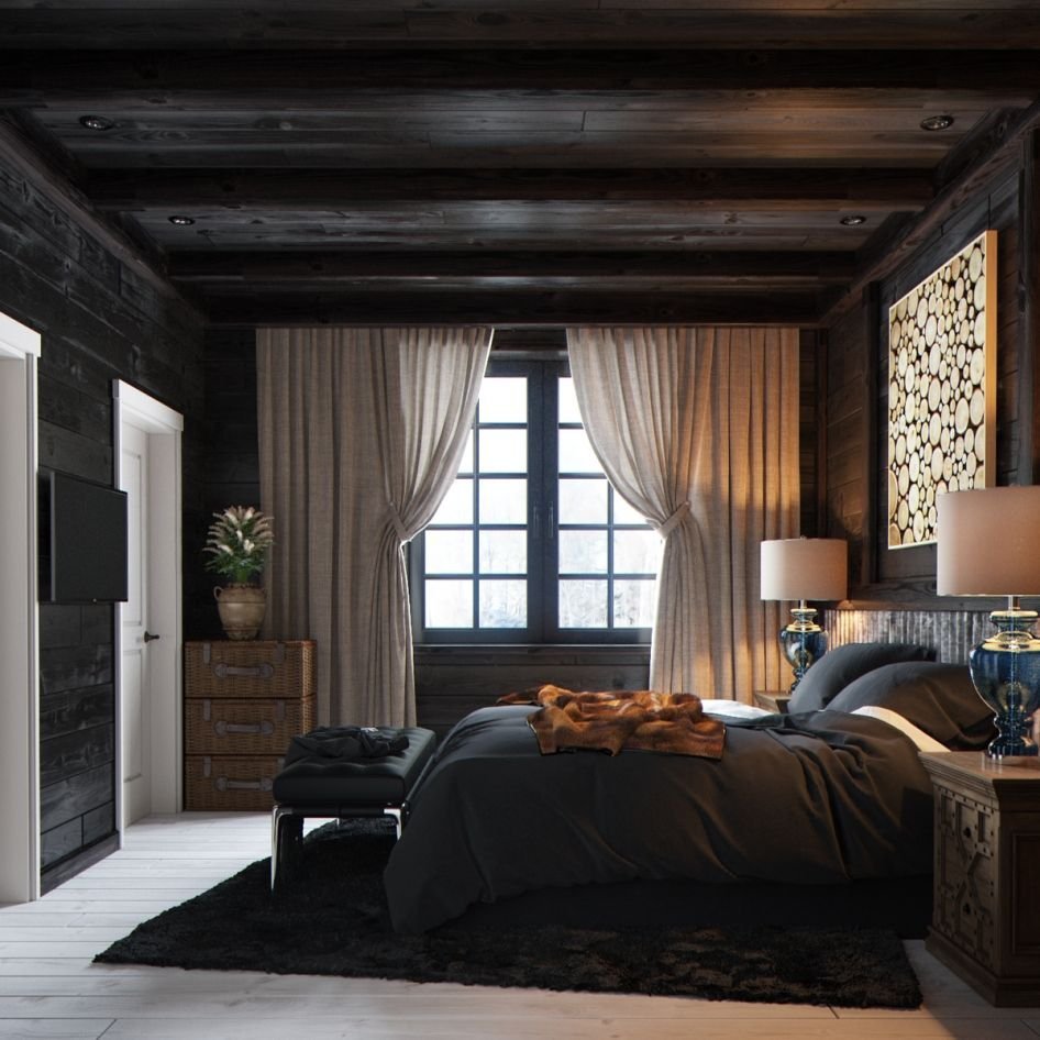 Спальня в стиле современного Шале