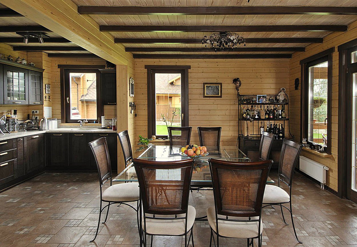 Интерьер кухни в доме из клееного бруса