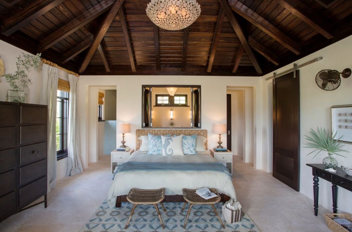Деревянный потолок в спальне